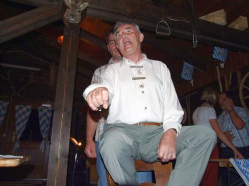 Unser Günter Meinhold konnte an diesem Abend dazu bewegt werden, seinen legendären "Leierkastenmann" noch einmal aufzuführen. auch wenn's die anwesenden Bayern vielleicht nicht ganz verstanden haben (uns ging's ja in der umgekehrten Richtung auch nicht viel besser), haben sie doch herrlich darüber lachen können.