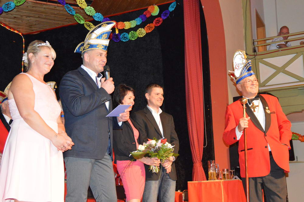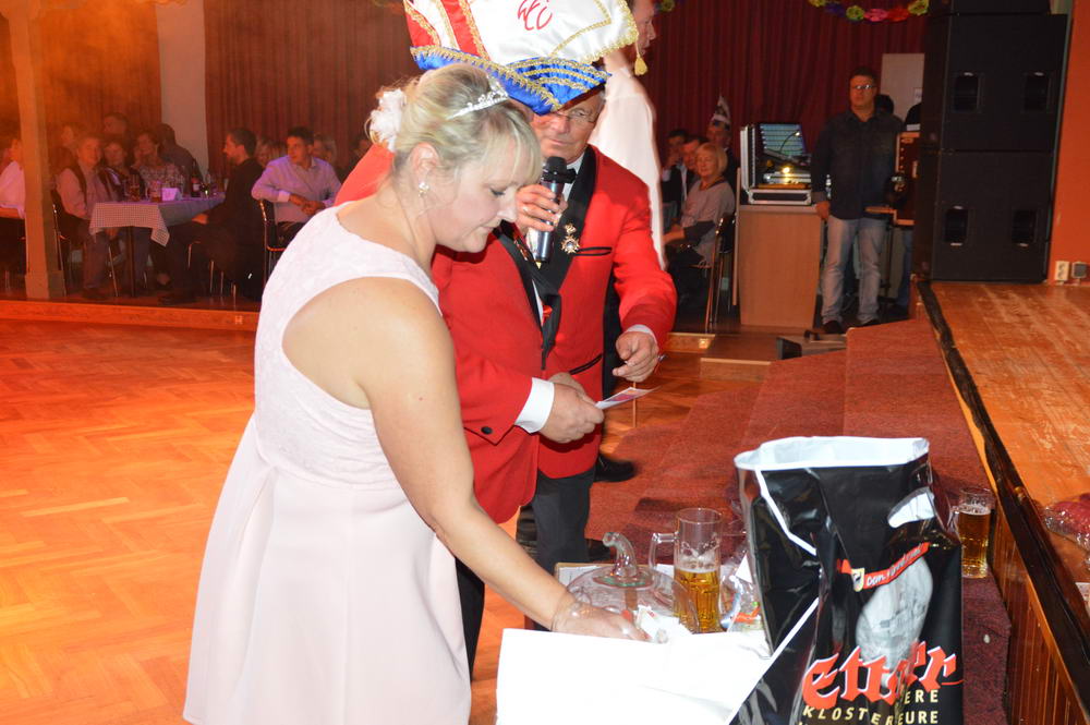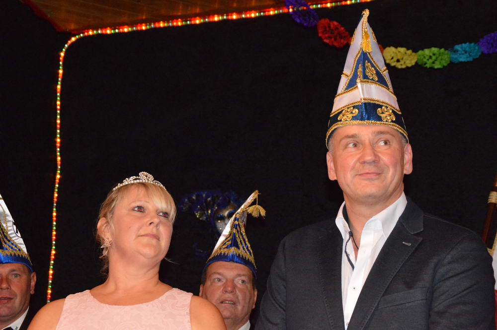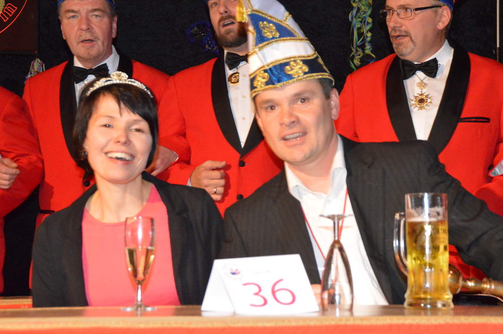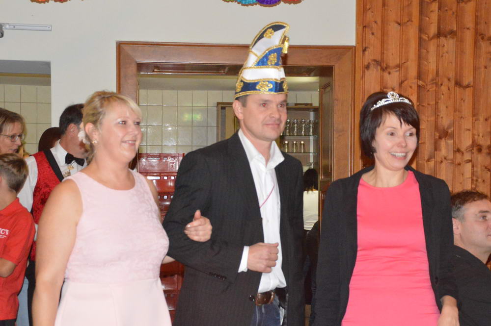 Der erste Höhepunkt des Abends brachte für die Meisten der Anwesenden endlich die Befriedigung einer langandauernden Neugierde: Wer wird denn nun das Prinzenpaar der neuen Faschingssaison?  Der Zeremonienmeister machte sich gemeinsam mit dem bisherigen Prinzenpaar auf die Suche unter den anwesenden Gästen. Und tatsächlich, mit Grit und Tilo Grahm wurden sie fündig.