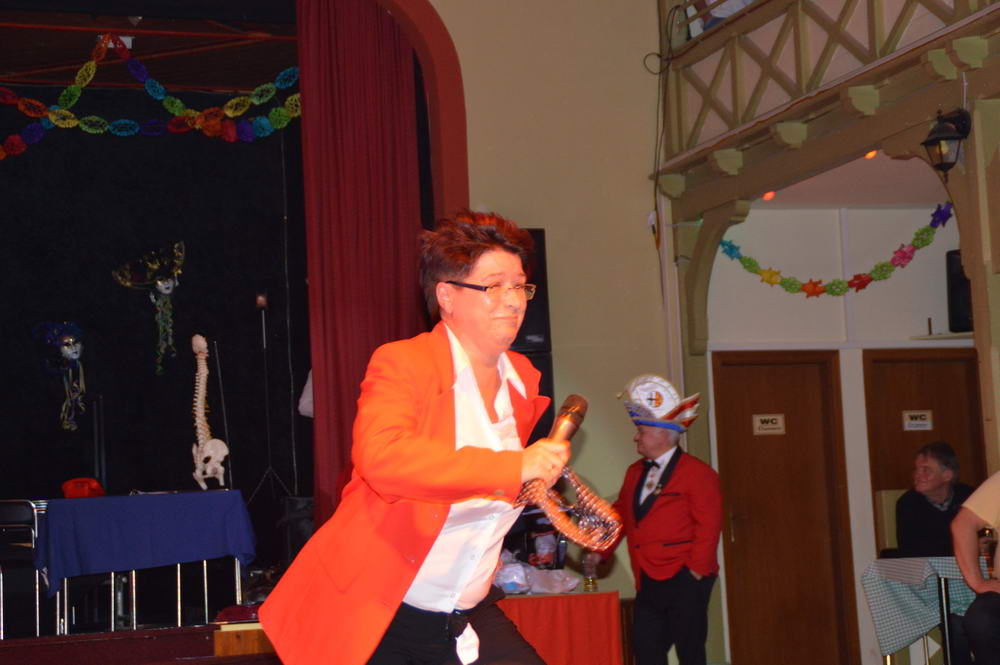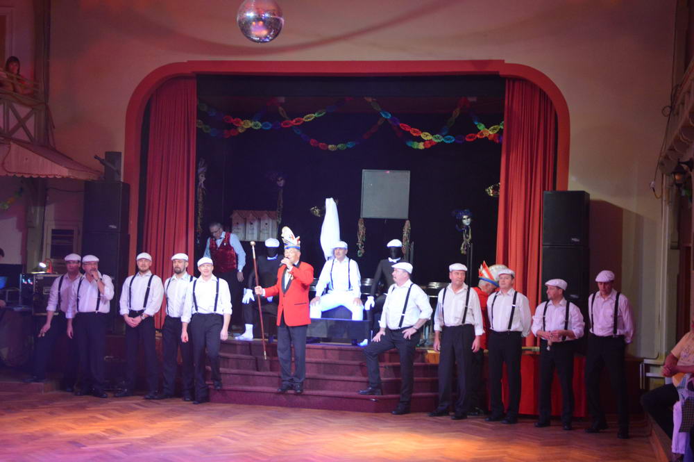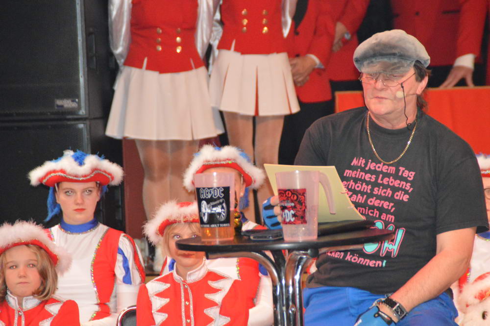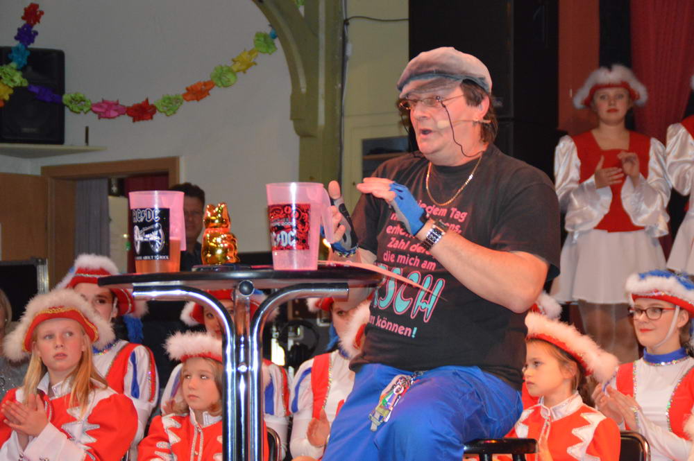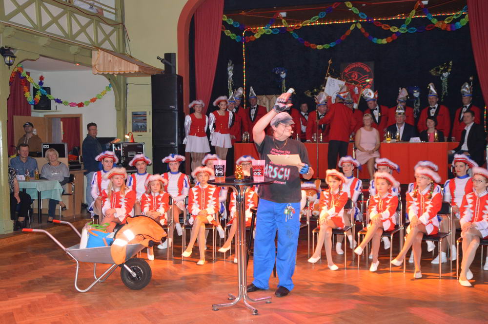 Damit jeder anwesende närrische Besucher weiß, wer im Verein – oder besser, im Elferrat – etwas zu sagen hat, wurden alle Elferratsmitglieder durch Thomas Schlimper vorgestellt. Die gute Seele des Schützenhauses trat als Hausmeister auf und vergab aus seiner Sicht für jedes Elferratsmitglied Punkte. Diese reichten von löblichen 10 von 10 Punkten für Udo Modes bis zu 6 von 10 Punkten für … (da wollen wir lieber drüber Schweigen bewahren).
