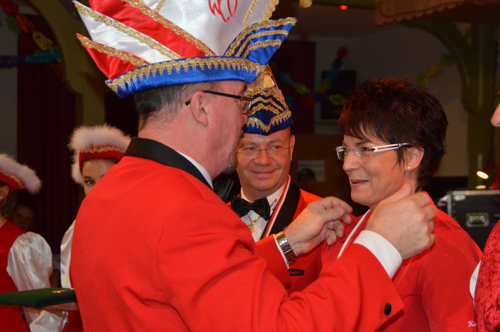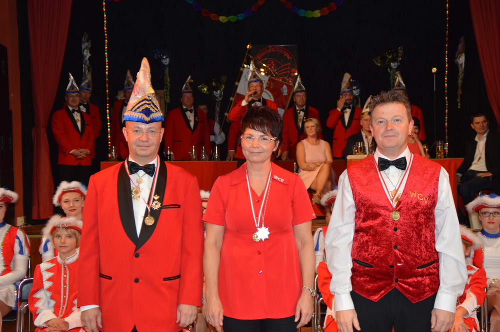 Bei der anschließenden Ordensverleihung wurden langjährig aktive Vereinsmitglieder geehrt. Nach diesem offiziellen Teil der Auftaktveranstaltung zogen sich die meisten Akteure des WCV erst einmal zurück, um sich für die kommenden Auftritte vorzubereiten. Diese fanden traditionell als Einlagen in der Tombola des WCV statt. Als Glücksfee der Tombola fungierte Prinzessin Grit die I.