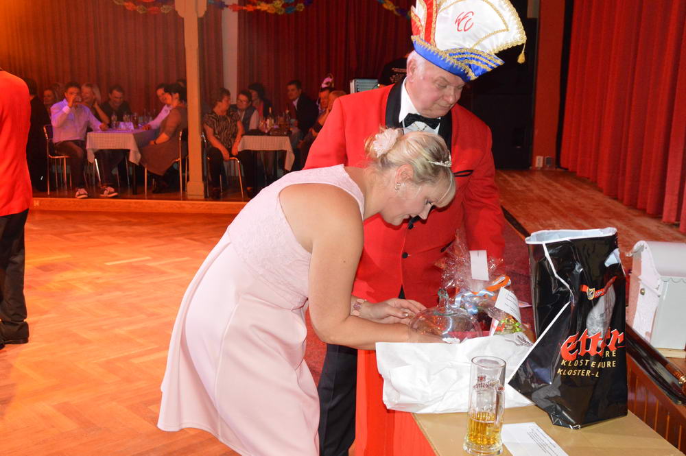 Nachdem das Prinzenpaar mit einem schön dargebotenen Wiener Walzer den Tanz des Abends eröffnet hatte, zog sich der Verein erst einmal an die Baar zurück. Währenddessen übernehmen die Gäste die Tanzfläche in Beschlag. Getanzt und gefeiert wurde bis weit nach Mitternacht.