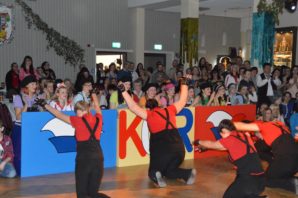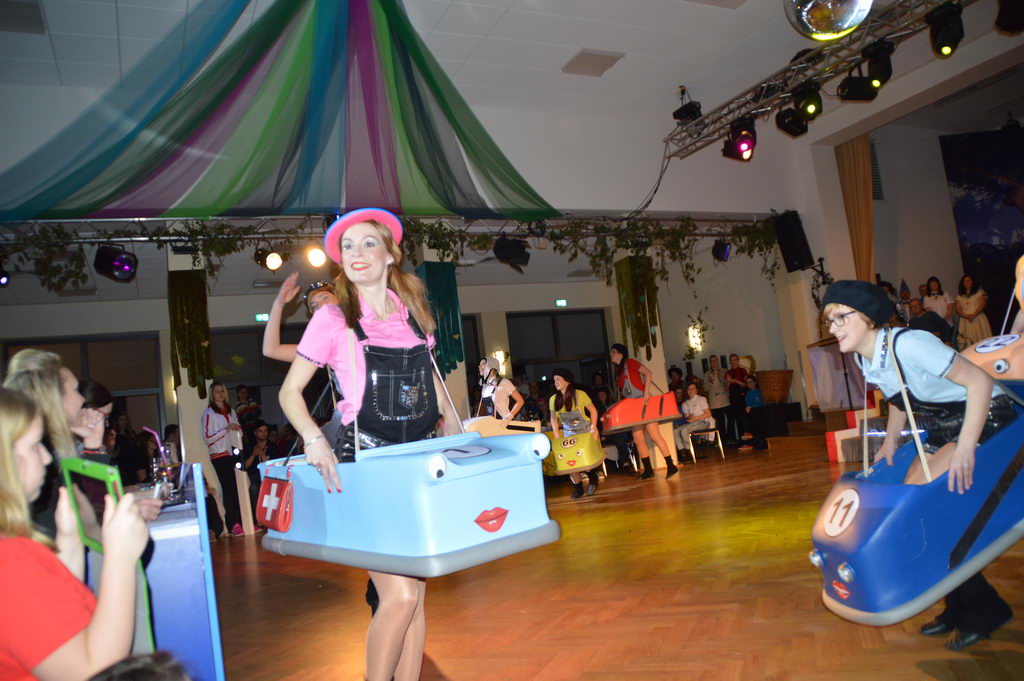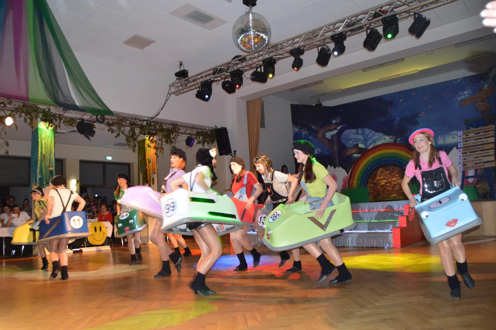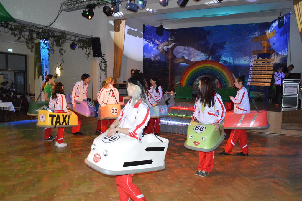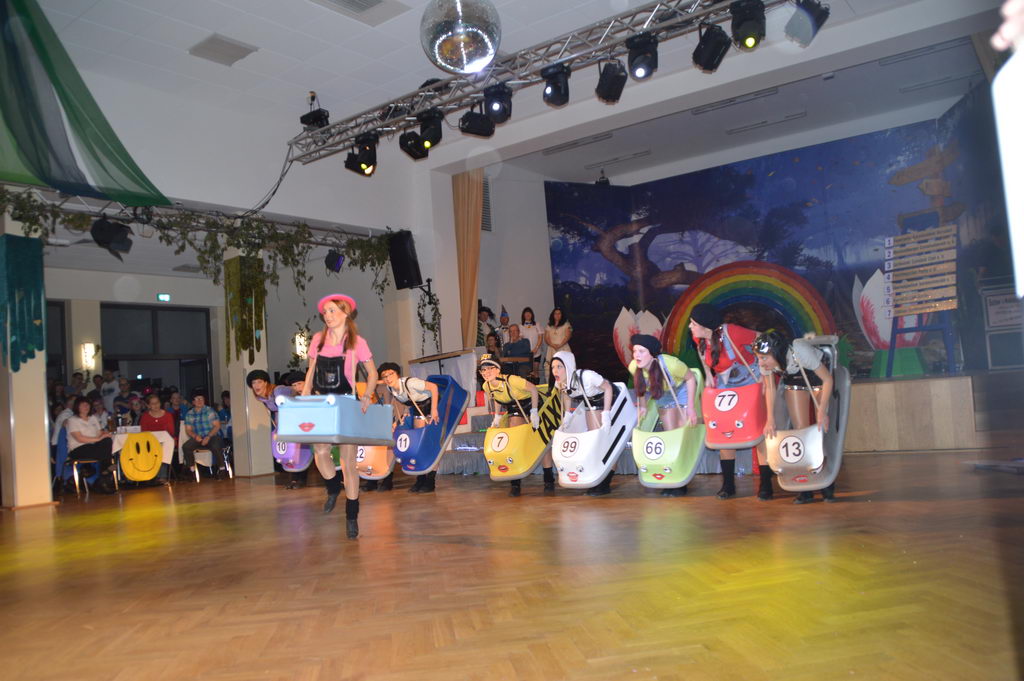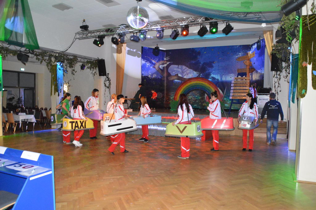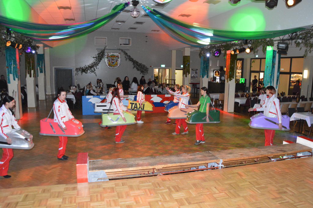 2016 02 04 21 06 44Der erste Auftritt wurde von der Funkengarde gestaltet. Diese vermischten den Gardetanz der 45. Saison ("Dshingis Khan") mit dem Showtanzauftritt ("Autoscooter"). Den Einmarsch und Teile des Gardetanzes absolvierten die Mädchen auf "Bobby-Cars". Es war eine toll gelungene Überraschung.