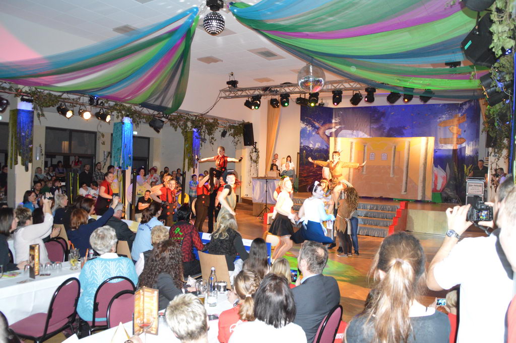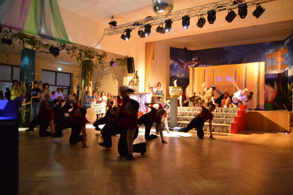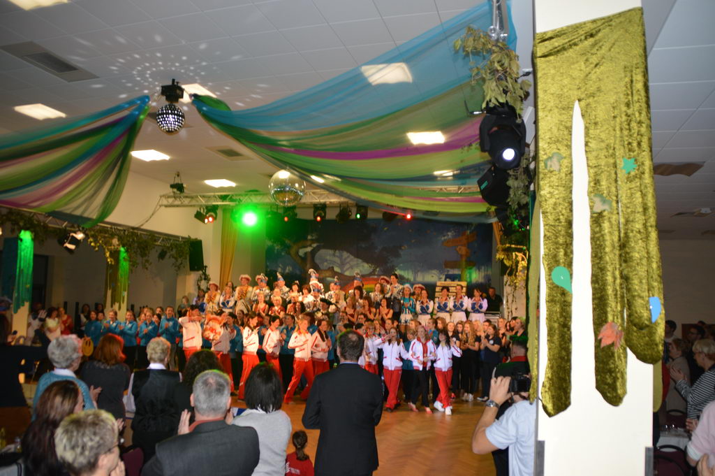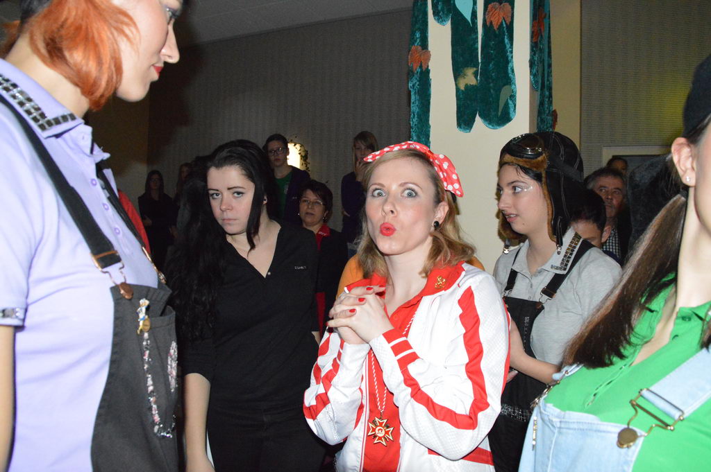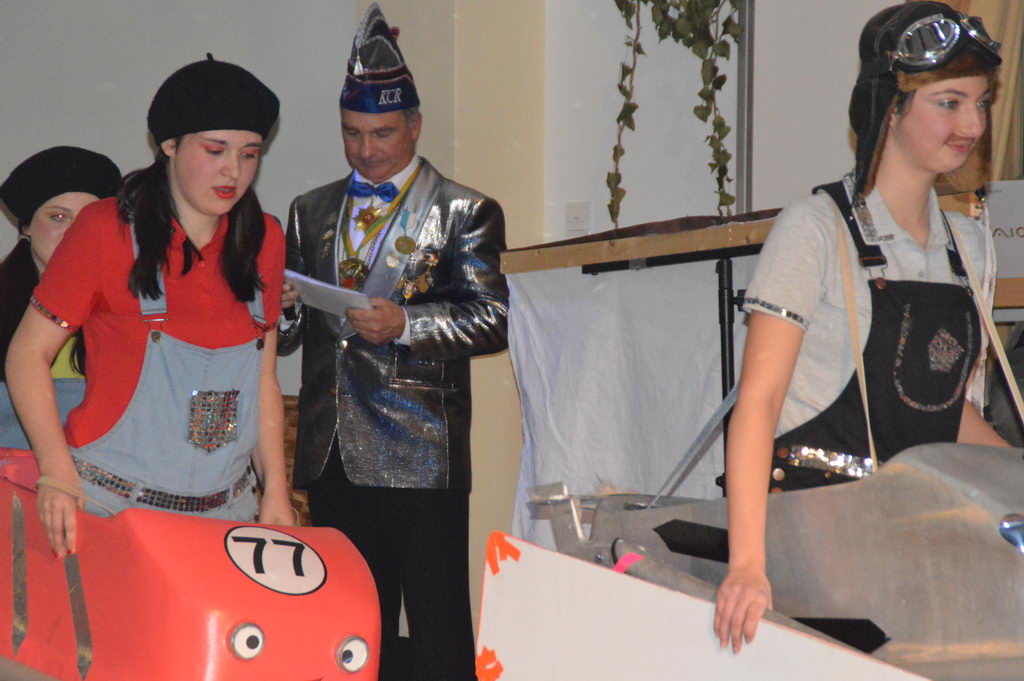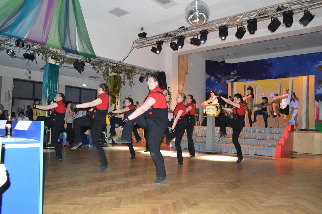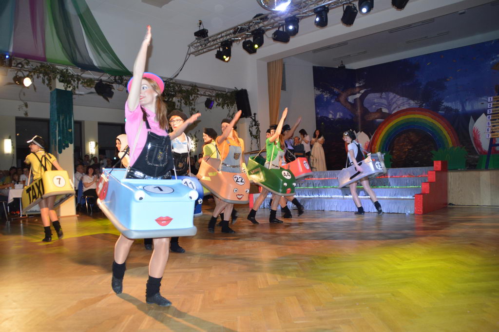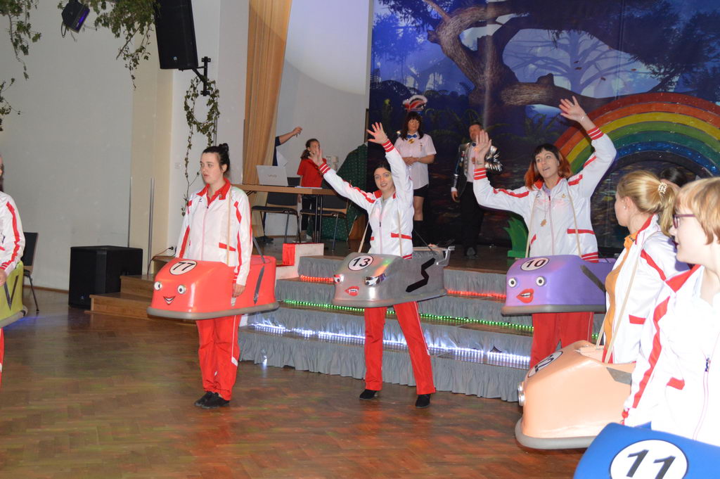 2016 02 04 21 06 44Der erste Auftritt wurde von der Funkengarde gestaltet. Diese vermischten den Gardetanz der 45. Saison ("Dshingis Khan") mit dem Showtanzauftritt ("Autoscooter"). Den Einmarsch und Teile des Gardetanzes absolvierten die Mädchen auf "Bobby-Cars". Es war eine toll gelungene Überraschung.