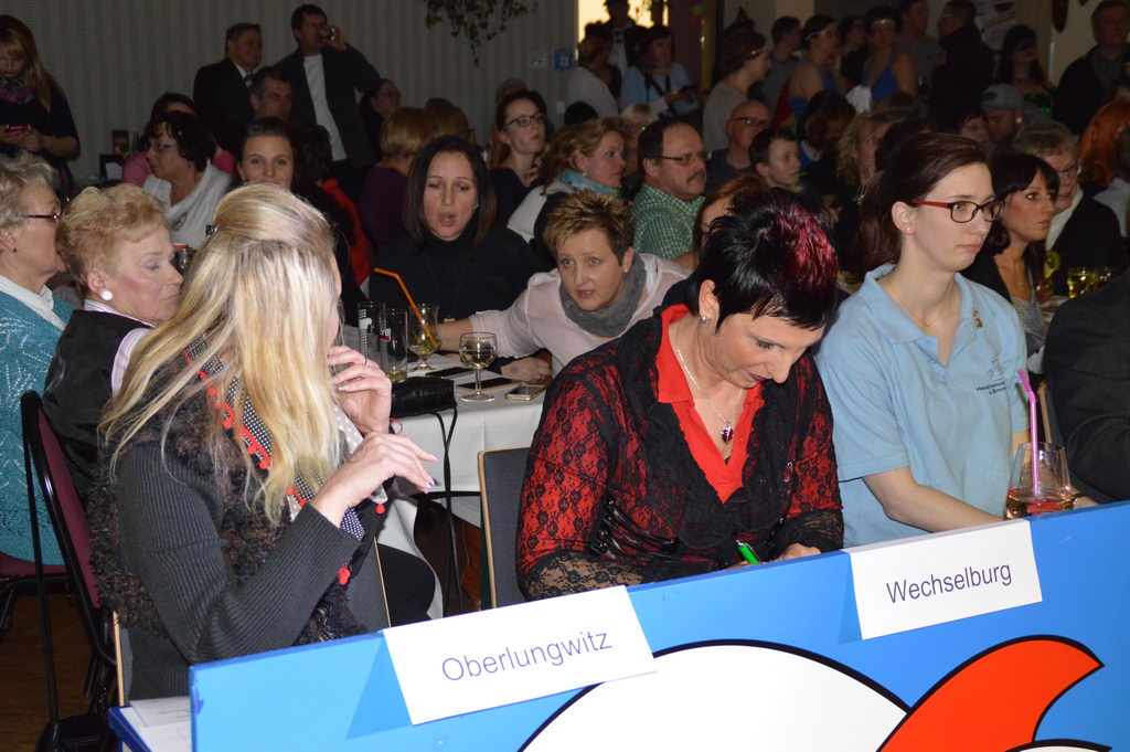 Zwölf mal Weiberfasching beim WCV, das heißt auch zum zwölften Mal verdrehte Welt in Wechselburg. Um es aber gleich vorwegzunehmen: Eins war diesesmal anders. Es sollte erstmals keinen Stripper geben. Die letzten Jahre hatten wir Stripper der unterschiedlichten Art erlebt. Von 'topp' bis 'nicht ansehbar' war alles vertreten. Doch den Ausschlag für diese Entscheidung hat überwiegend das Verhalten des Publikums in den letzten Jahren beim Auftritt des Strippers gegeben. Sobald dieser angekündigt wurden, leerten sich die Sitzplätze rund um die Tanzfläche - also  genau die Plätze, aus denen sich die Stripper ihre 'Mitmach-Akteure' auswählten. Ansehen wollten sich den Auftritt einige, aber mitmachen wollte kaum eine. Für künftige Veranstaltungen sollten die anwesende Weiberschar selbst eine Entscheidung fällen. Alle, die künftig einen Stripper sehen wollen, sollten ihre Eintrittskarte in einen vorbereiteten Briefkasten werfen. Egal, wie am Ende die eingeworfene Anzahl von Stimmzetteln zustande gekommen ist. Es waren etwas mehr als 60 'Dafür'-Stimmen bei insgesamt 240 anwesenden Stimmberechtigten im Saal.