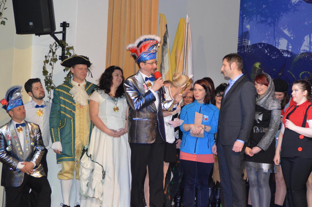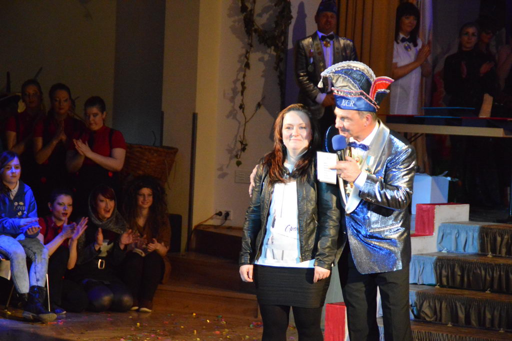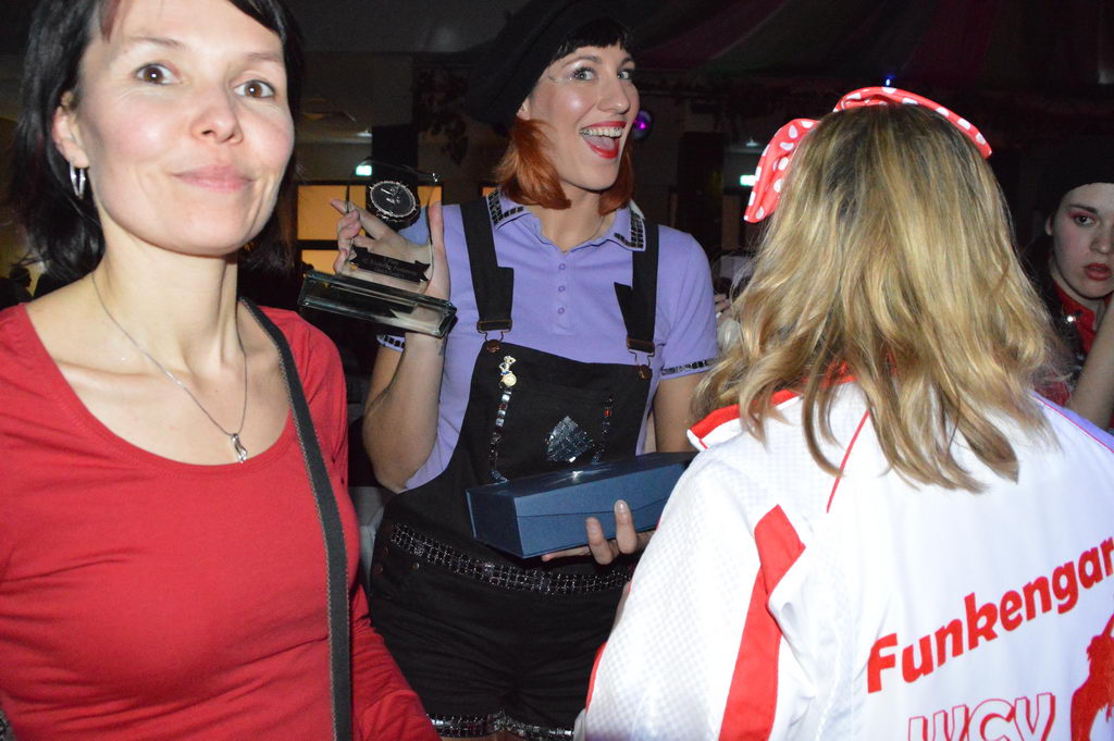 vorgestellt. Prinz Anjo verlas den anwesenden Weibern die Regeln für den heutigen Abend. Bei der anschließenden Ordensverleihung wurd Conny Jänsch für würdig befunden, den höchsten Orden des Weiblichen Elferrates zu tragen. Den Abschluss dieses ersten Teiles des 12. Weiberfaschings bildete der Tanz der männlichen Garde. Gleich darauf belagerten die närrischen Weiber die Tanzfläche, bis es wieder hieß "Schnee, Berge, eine Hütte, …".