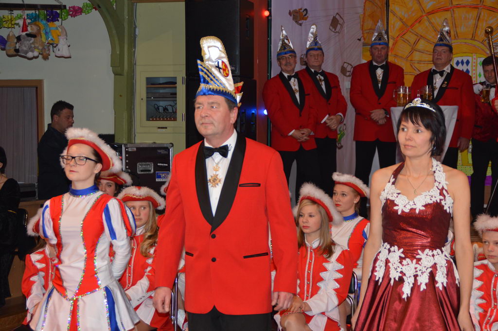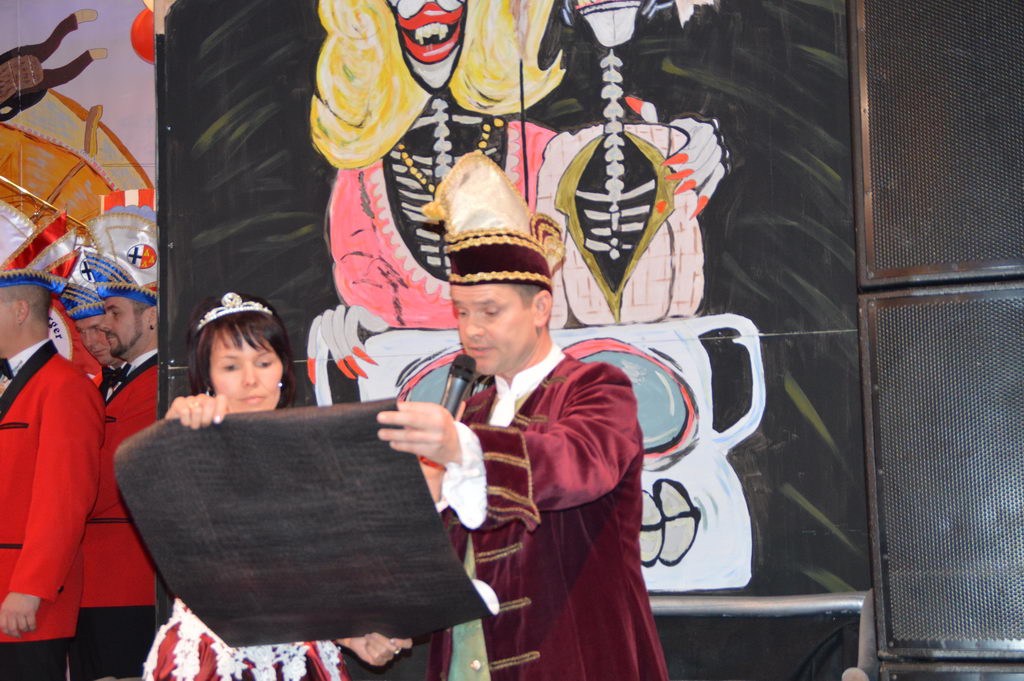 Gefolgt vom Elferrat mit dem diesjährigen Prinzenpaar Anja und Sven Heß und der Kindergarde waren alle Akteure für den ersten - den sogenannten offiziellen - Teil der Faschingsveranstaltung im Saal. Damit jede Närrin und jeder Narr auch weiß, wie er sich an diesem Abend zu verhalten hat, trug Prinz Sven II. die Gesetze des Abends vor.  Zur großen Ordensverleihung des WCV war er es auch, der aus den Händen des Präsidenten Udo Modes den Prinzenorden als Anerkennung für seine geleistete Arbeit überreicht bekam. Es ist ja mittlerweile zu einer schönen Tradition geworden, dass sich das Prinzenpaar aktiv in der Ausgestaltung des Saales mit einbringt.