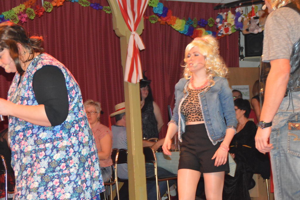 Aus nächster Nähe konnte sich die Familie dann eine Reihe von Jahrmarktattraktionen bestaunen. Egal, ob es sich um die Größte Frau (Kathrin Pfefferkorn), die siamesischen Zwillinge (Ulrike Schäfer und Stephanie Andrae), die Frau mit Bart (Marika Listner), den kleinsten Menschen (Liesbeth Lerche)oder den stärksten Mann (Anja Müller) handelte - zu allen hatten sie ihren Senf dazuzugeben. Nach diesen Atraktionen kündigte der Marktschreier gleich noch eine weitere an: tanzende Zwerge (Waschweiber), die die Zuschauer mit Tänzen zu unterschiedlichsten Musik-Genres erheiterten.