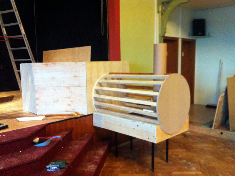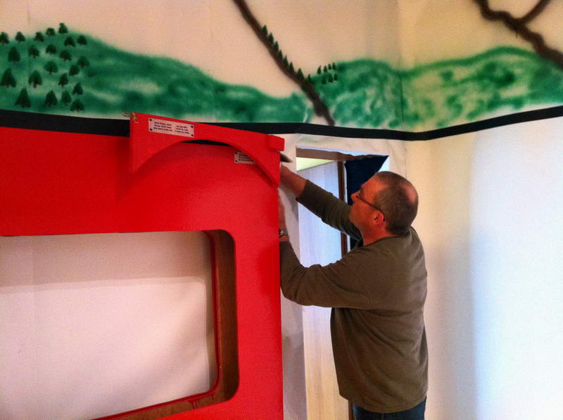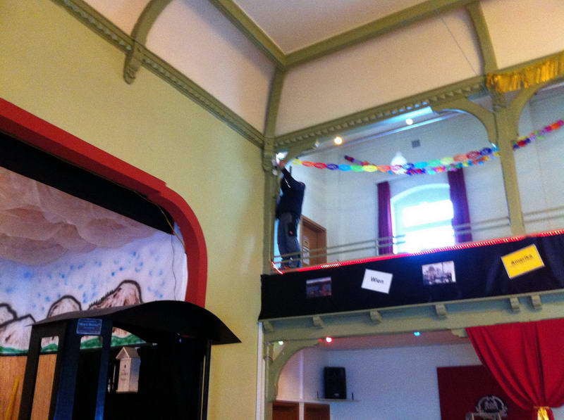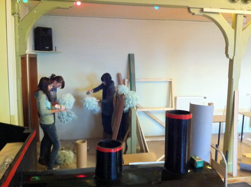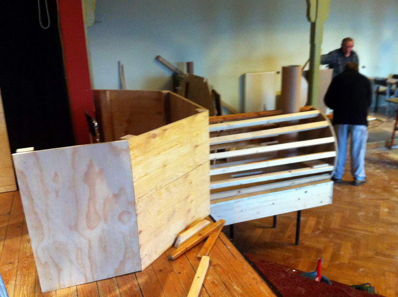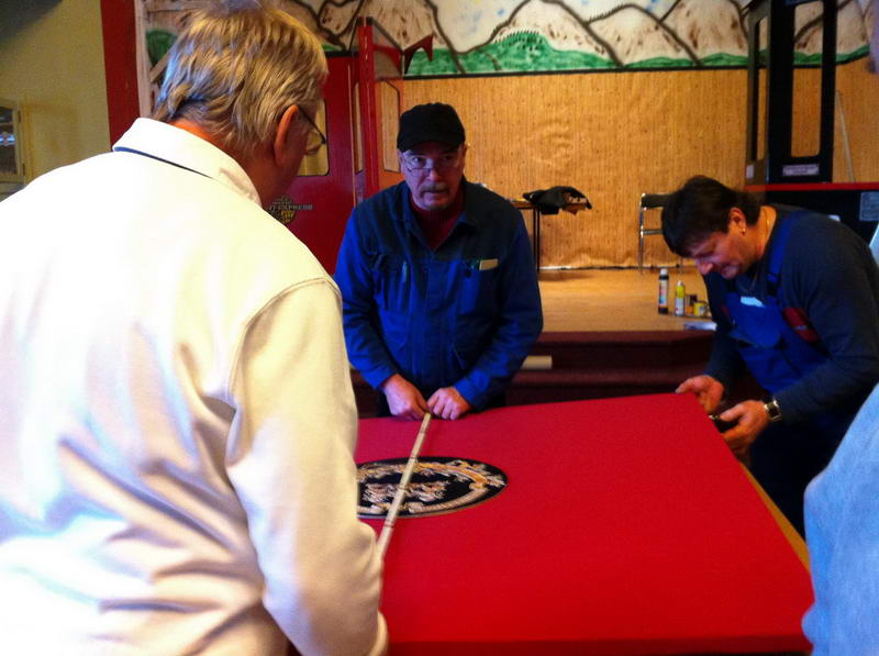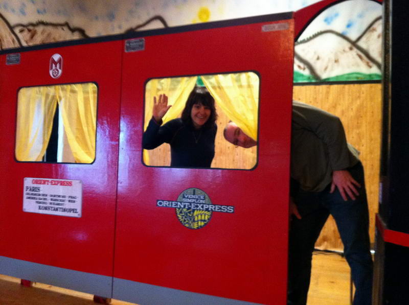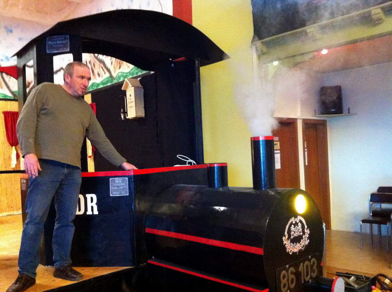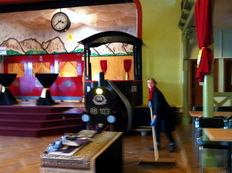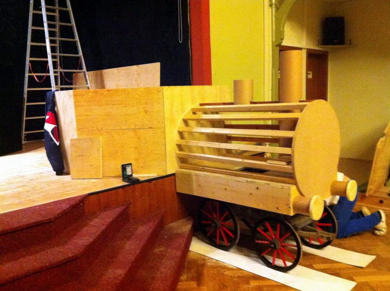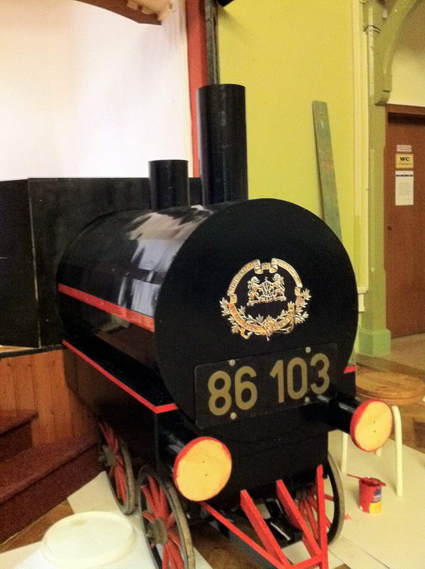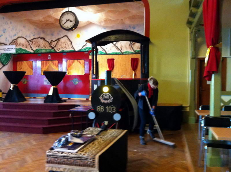 Dem Saalaufbau vorangegangen war die Arbeit der "Gruppe Bühne". Hier wurde in mindestens genau so vielen Mannstunden wie beim Saalaufbau - allerdings mit viel weniger Leuten - die Bühne in einen zünftigen Orientexpress verwandelt. Der absolute Hingucker (auf Neudeutsch sagt man jetzt wohl Eigädscher dazu) ist dabei sicherlich die Prinzenloge in Form einer Dampflokomotive.