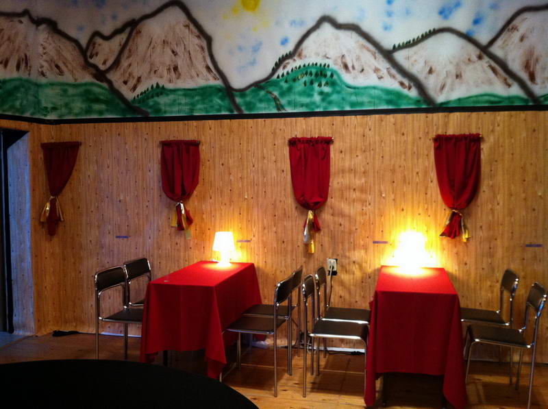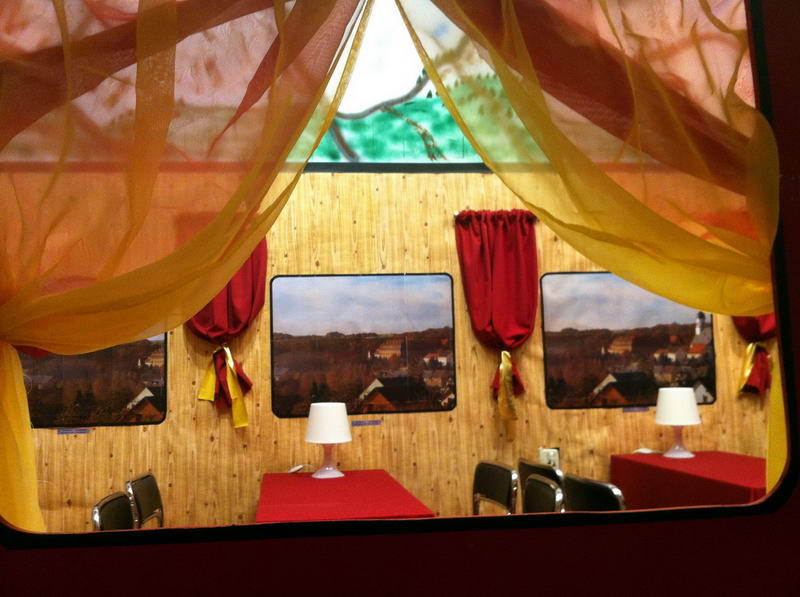 Aber auch die übrige Bühne kann sich sehen lassen. Hier können es sich die Vereinsmitglieder sowohl zum Programm als auch in den Stunden danach im Luxus-Salonwagen so richtig gemütlich machen.