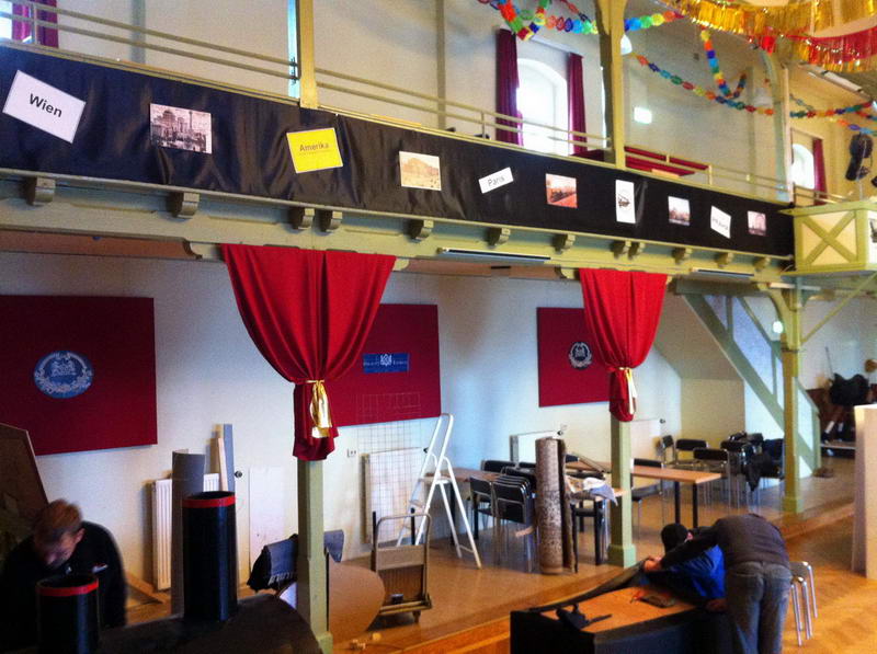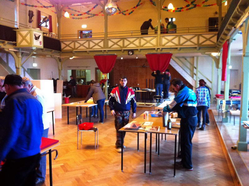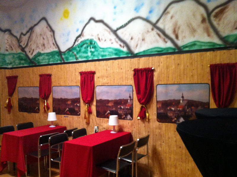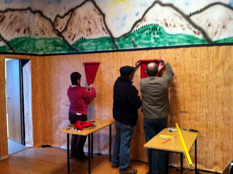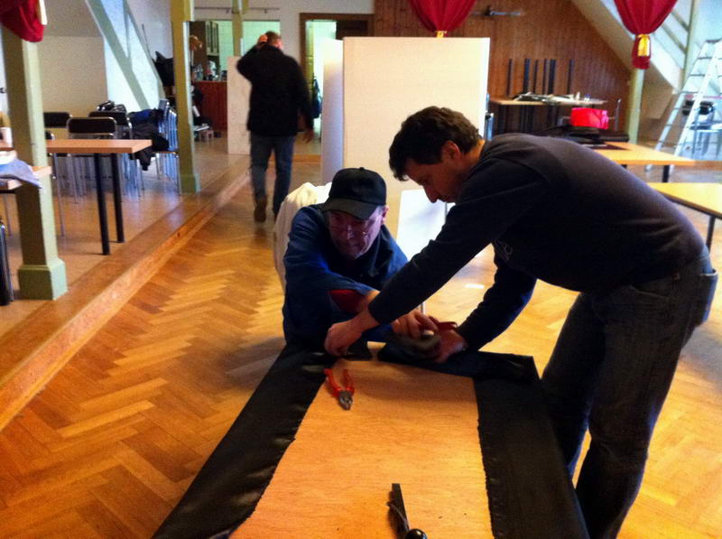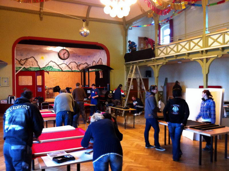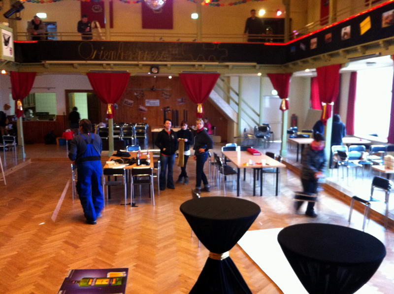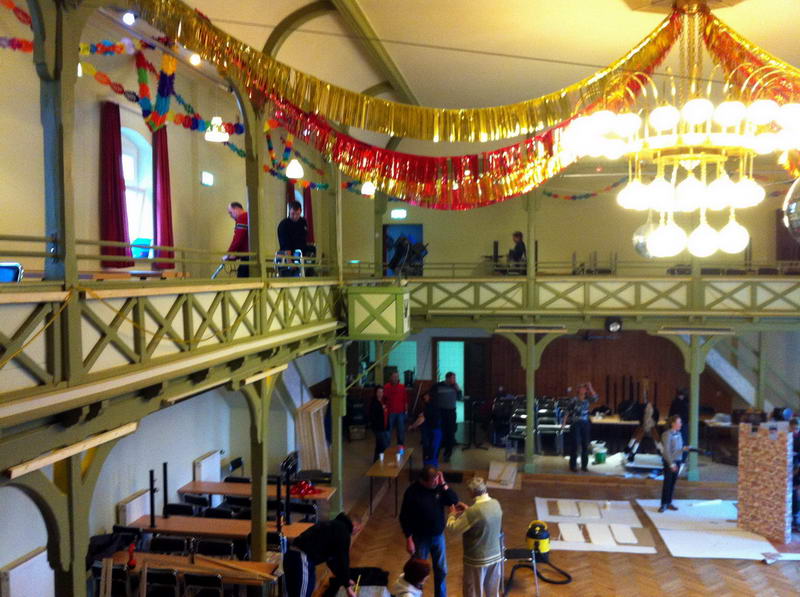 Trotz das die für die Saaldekoration notwendigen Stoffe viel zu spät geliefert wurde, konnte durch die fleißige Arbeit vieler Hände doch noch alles rechtzeitig fertig werden.