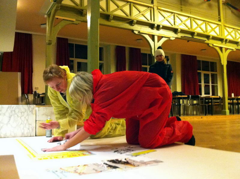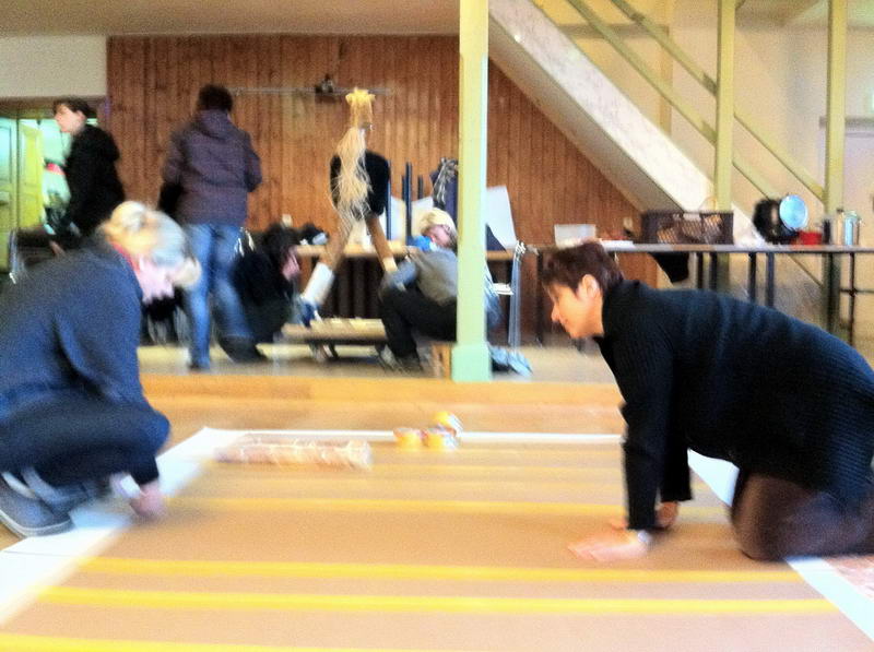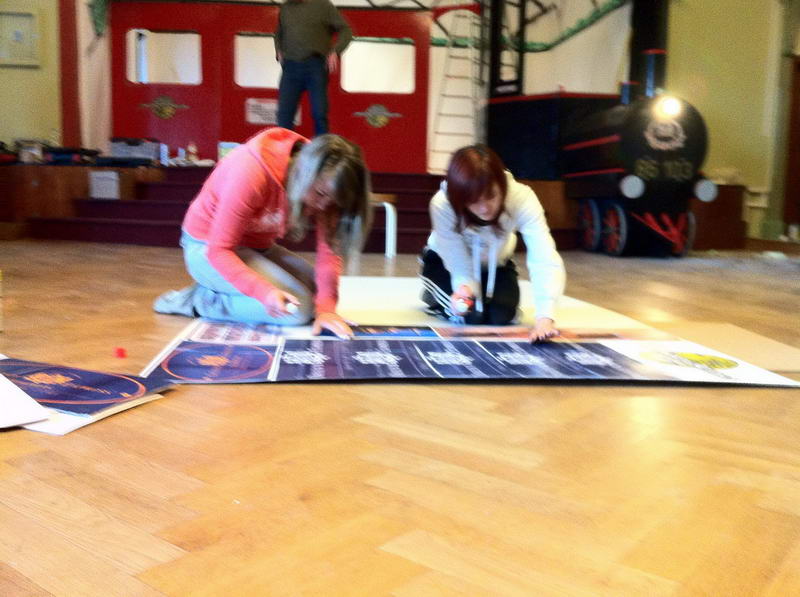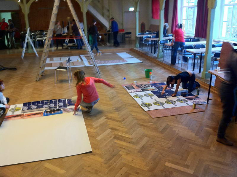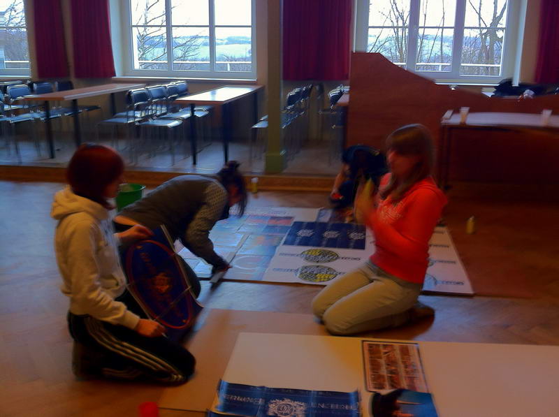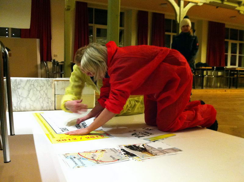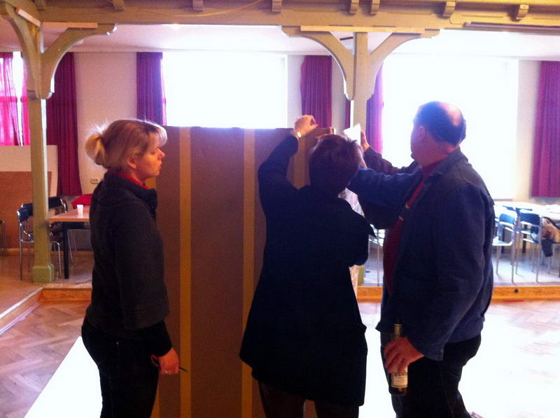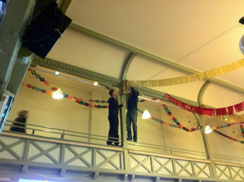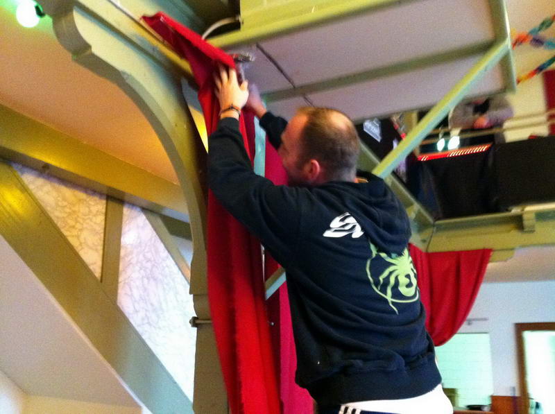 Trotz das die für die Saaldekoration notwendigen Stoffe viel zu spät geliefert wurde, konnte durch die fleißige Arbeit vieler Hände doch noch alles rechtzeitig fertig werden.
