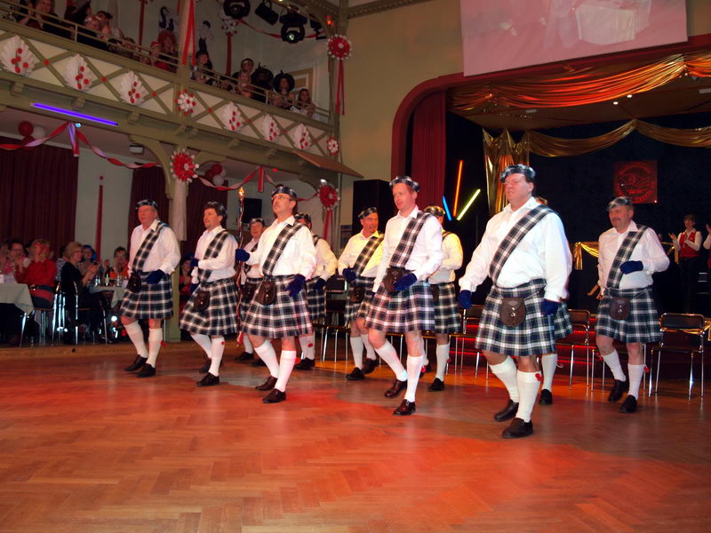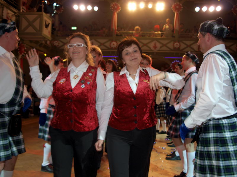 Pünktlich um 20.00 Uhr begann das Männerballet mit ihrem Gardemarsch im Schottenkostüm bevor durch Karina Baronius der weibliche Elferrat des WCV und das Prinzenpaar der 40. Saison angekündigt wurde, die unter den bekannten Klängen "Schnee, Berge, eine Hütte..." in den Saal einzogen.