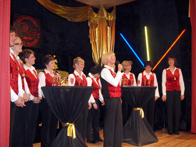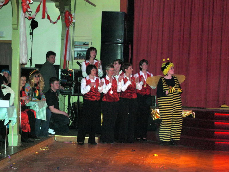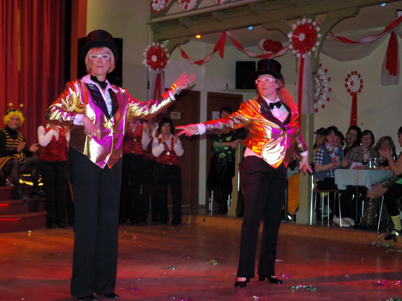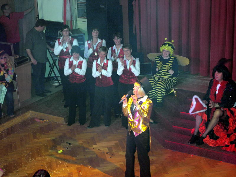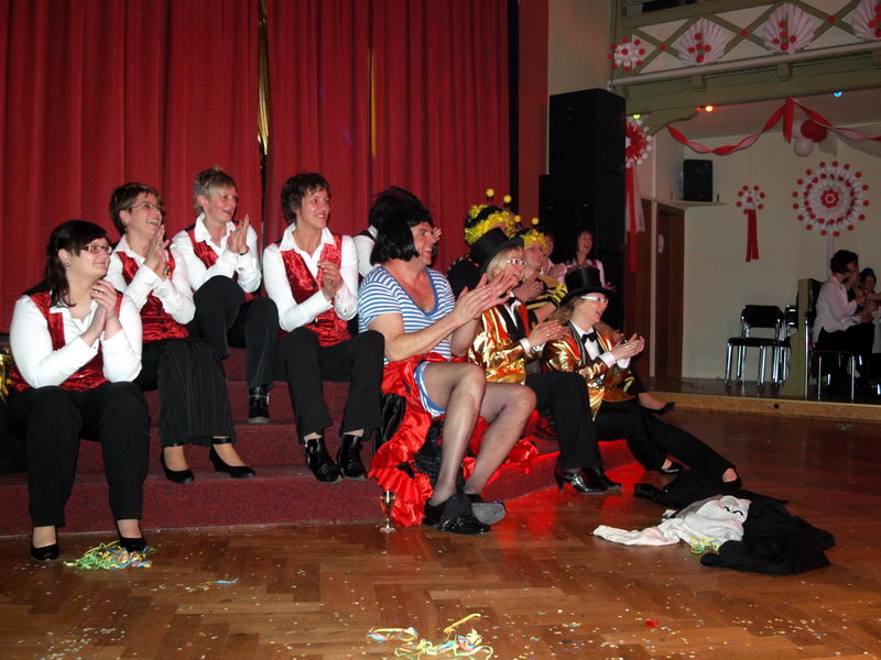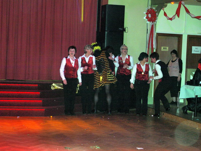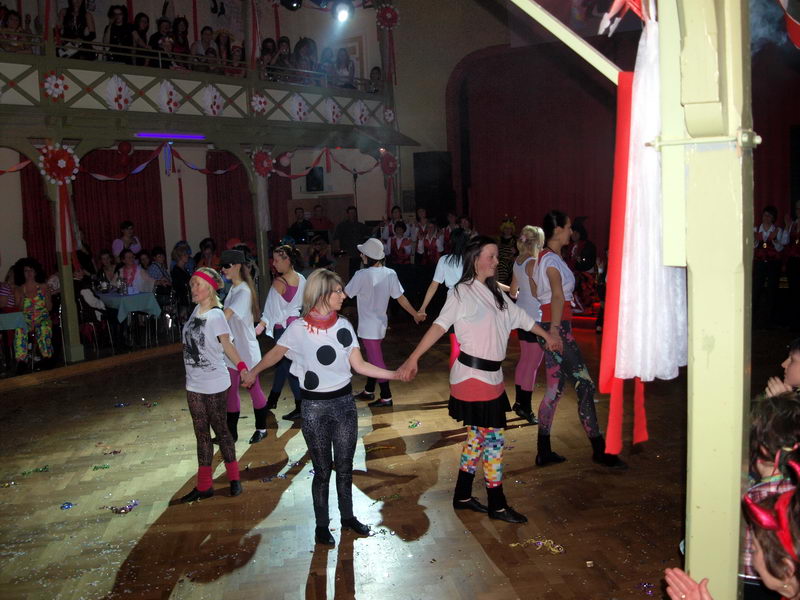 Nach diesem Auftritt hatten dann erst einmal die anwesenden närrischen Weiber das Schützenhaus für sich, denn die (zumeist männlichen) Akteure verzogen sich in die Umkleideräume, um sich auf den nächsten Auftritt vorzubereiten. In der Zwischenzeit wurde auf der Tanzfläche zur Musik der Discothek "Sunshine" von und mit Axel Schalk, kräftig das Tanzbein geschwungen.