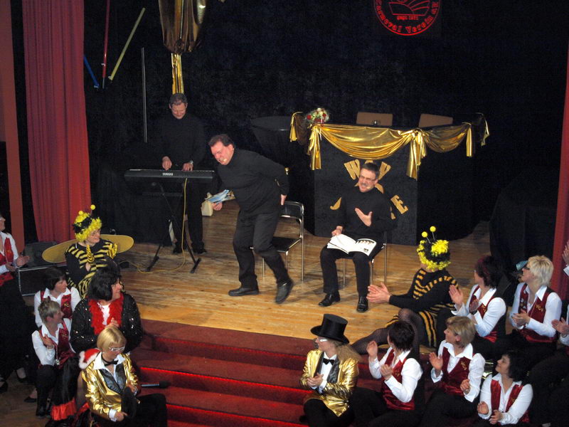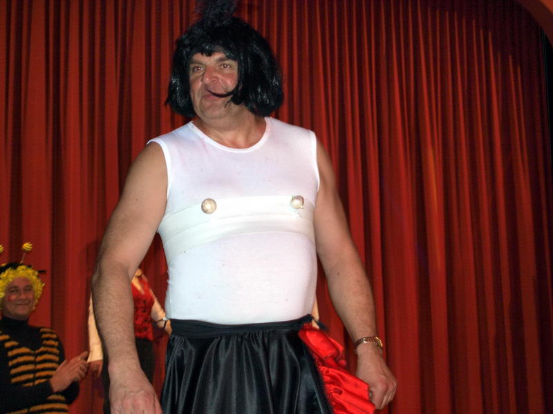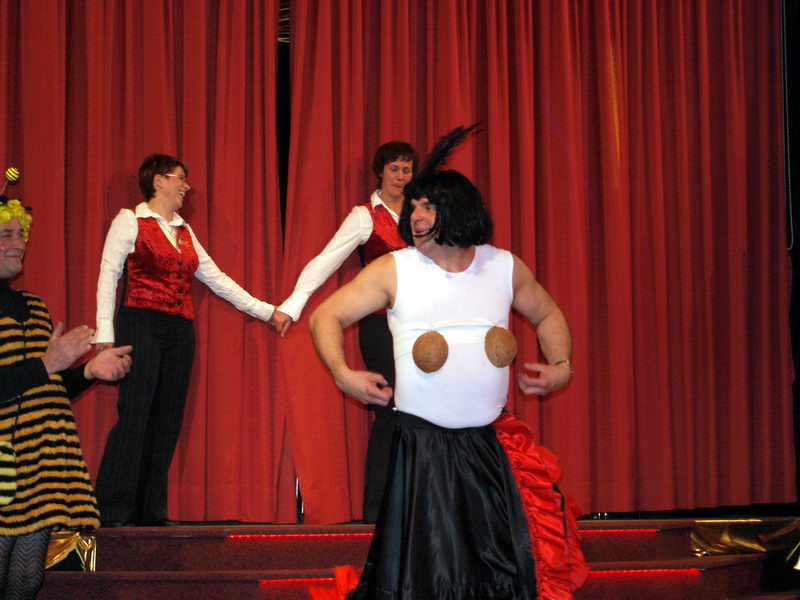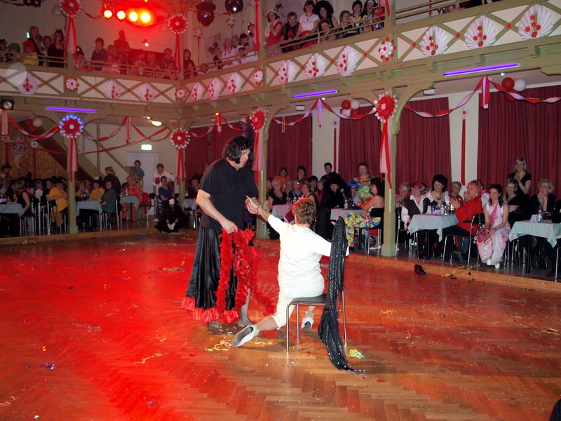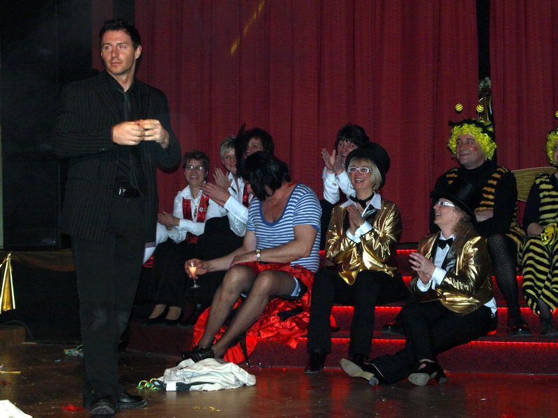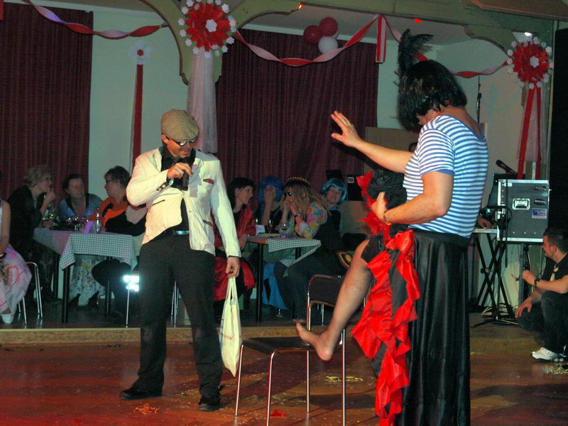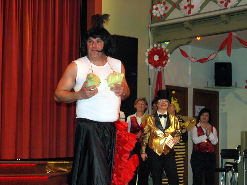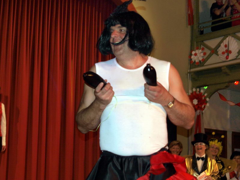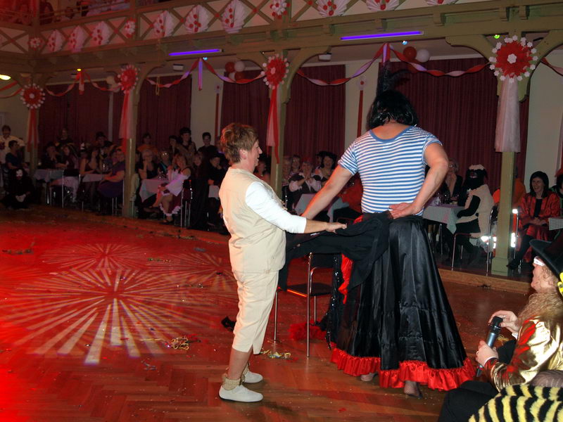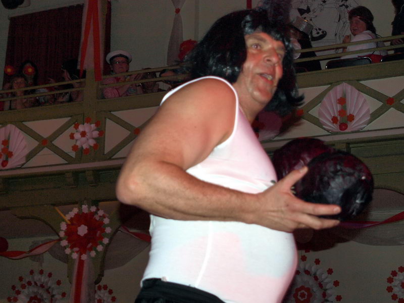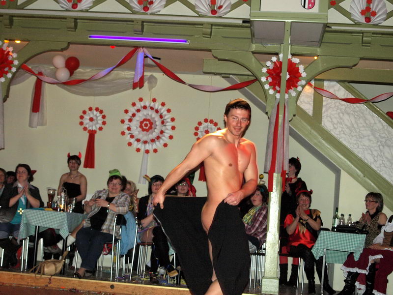 Im vergangenen Jahr hatte der damalige Prinz (Gerd Wagner - alias Kieselsteinchen) groß getönt: Wenn Ihr keinen Stripper findet, dann mache ich das. Man nahm ihn beim WCV natürlich gleich beim Wort. Als Höhepunkt des Abends wurde er mit den Worten "Begrüßt mit mir unsere Sexbombe Gerd" angekündigt. Dieser begann auch sehr professionell. Sogar eine Partnerin holte er sich aus dem Publikum. Doch als er begann, wirklich zu strippen, wurde er von Karina und Mandy unterbrochen. Diese kündigten dann den tatsächlichen Stripper an.