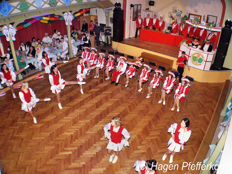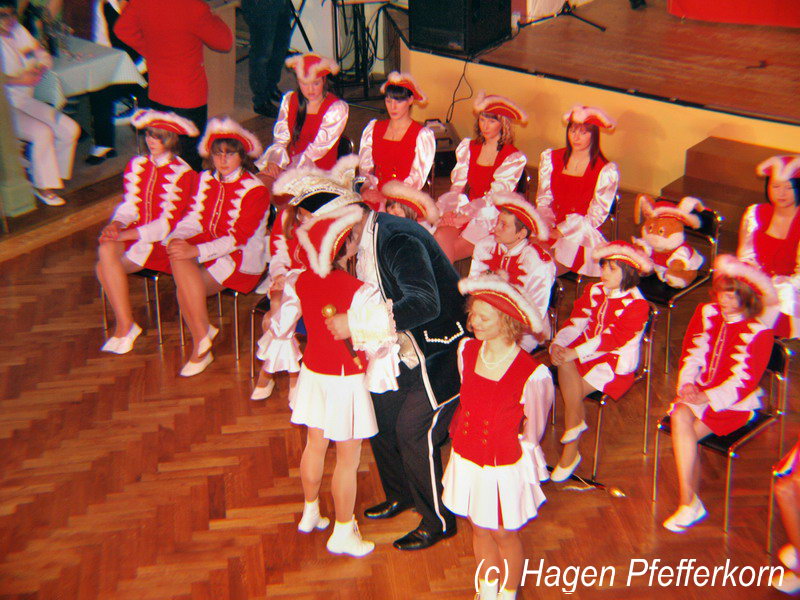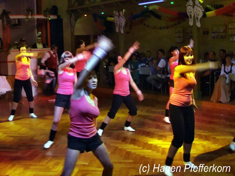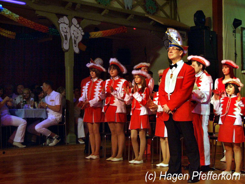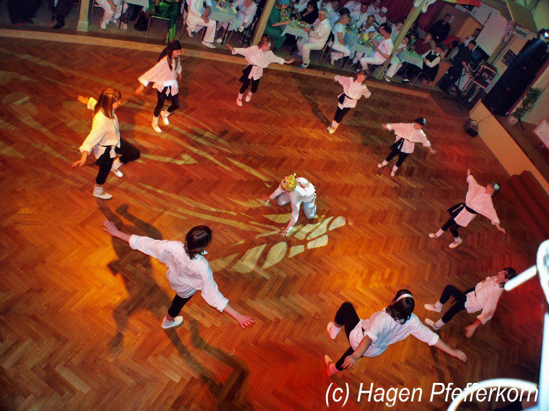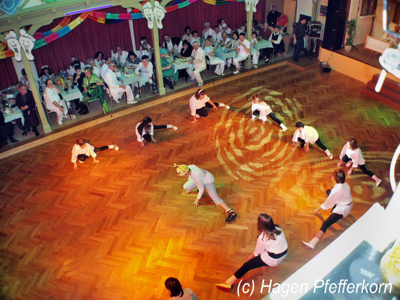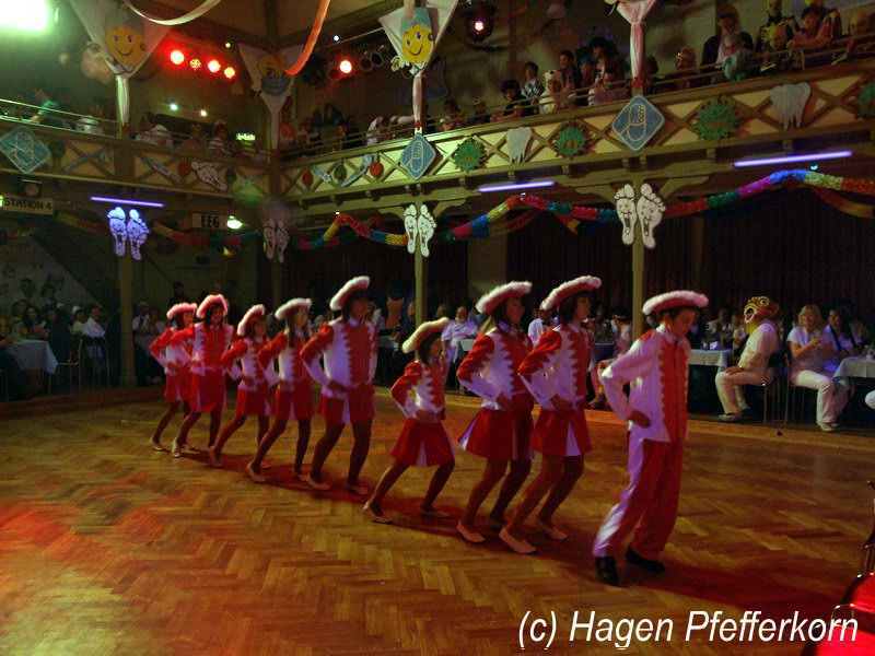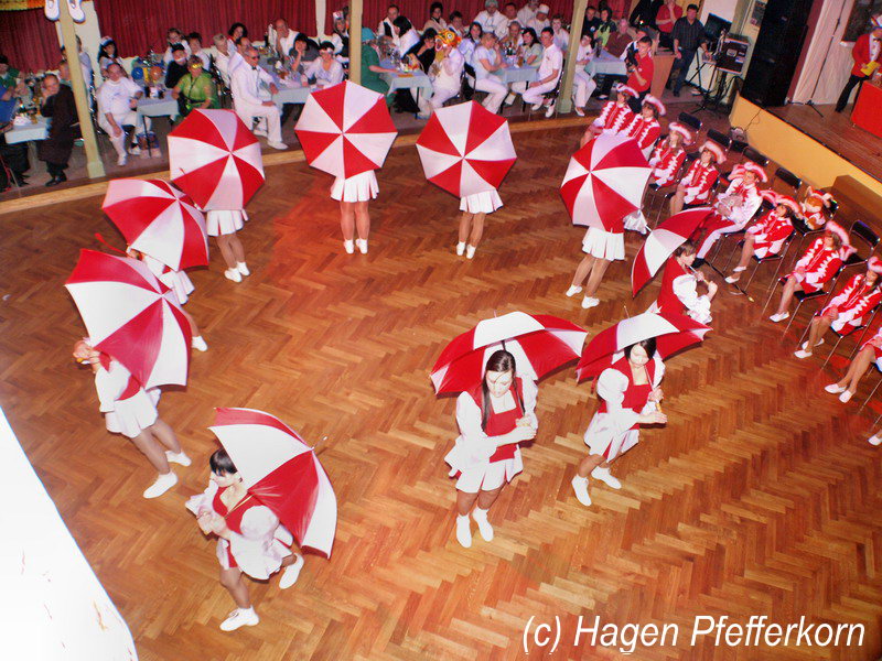 Traditionell bildete die Prinzengarde mit dem Gardetanz („Regentanz“) der Saison 2009/2010 den Abschluss des ersten, des offiziellen Teiles unserer Faschingsveranstaltung. Spätestens zu diesem Zeitpunkt war am Beifall deutlich zu spüren, dass das närrische Publikum in Faschingslaune gekommen war.