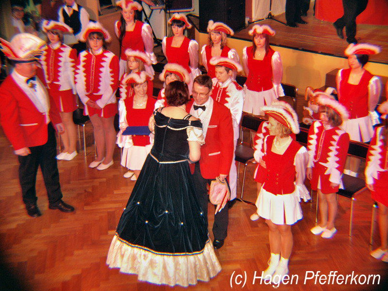 Die Närrinnen und Narren übernahmen jetzt das Schützenhaus in ihre Hand. Allerdings nicht, bevor Prinzessin Manuela II. und Prinz Gerd I. den Tanz mit ihrem Schneewalzer eröffnet hatten. Bis weit nach Mitternacht wurde fleißig getanzt.