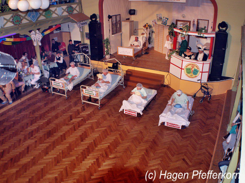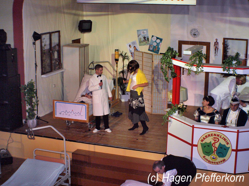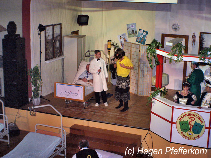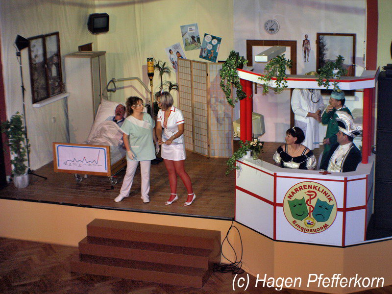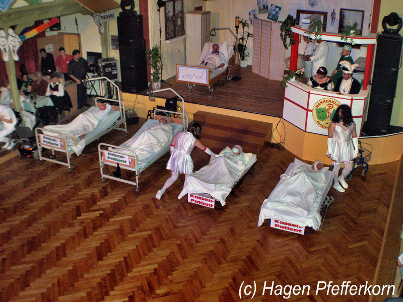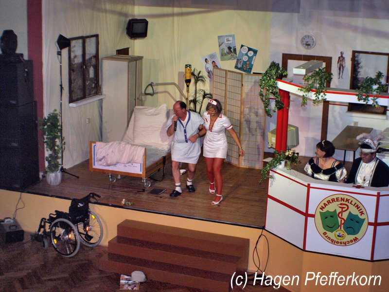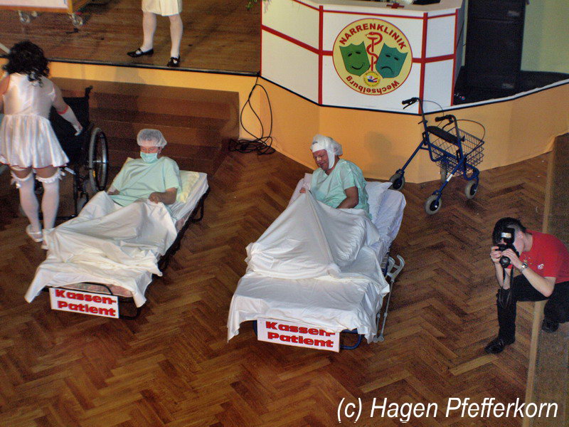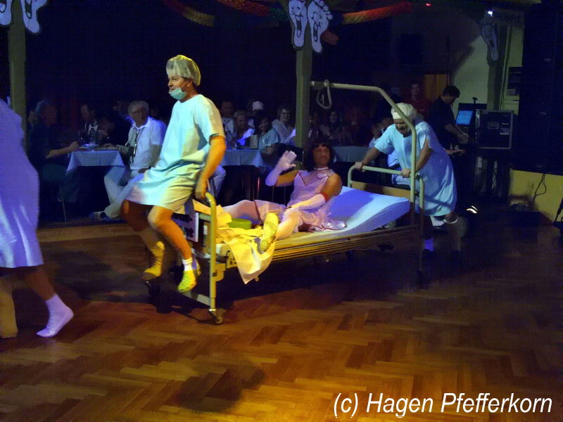 Plötzlich erklang ein Martinshorn und ein Unfallpatient (Udo Modes) wurde in die Narrenklinik eingeliefert. Begleitet von Schwester Conny (Conny Hentschel) und Schwester Mandy (Mandy Schlimper) wurde er zur Aufnahme gebracht und notversorgt.