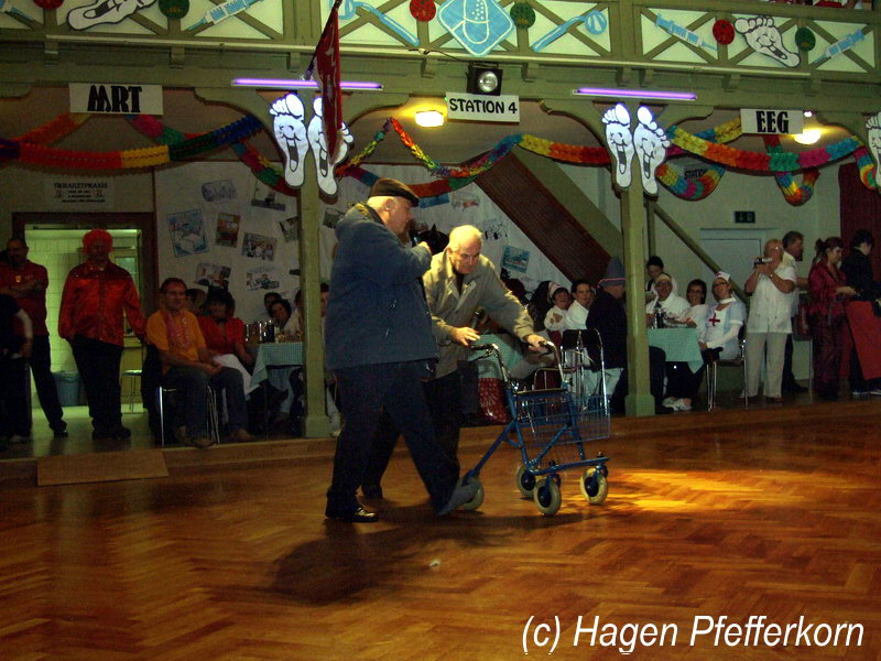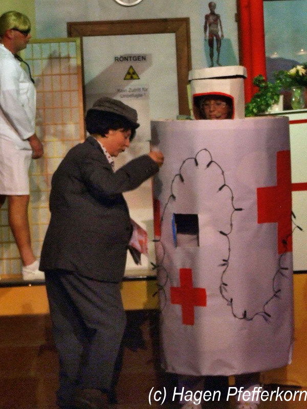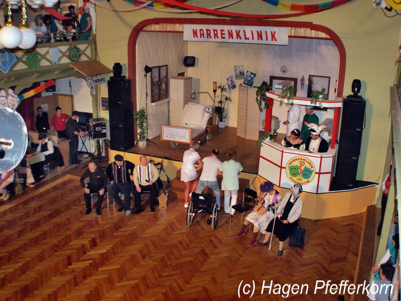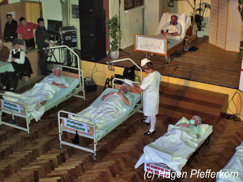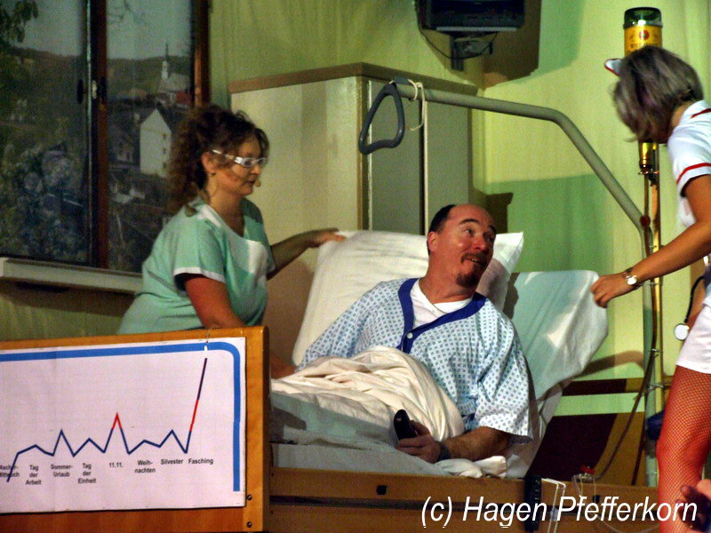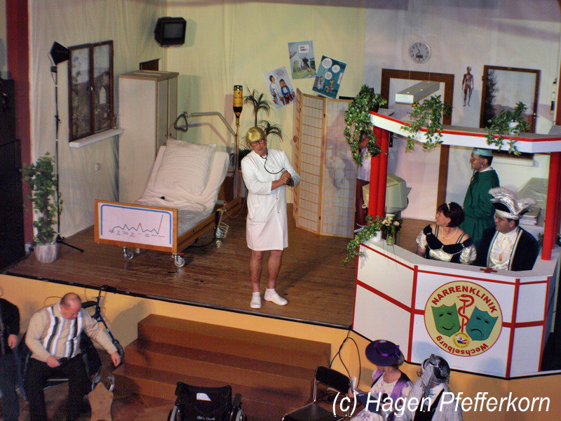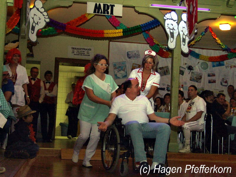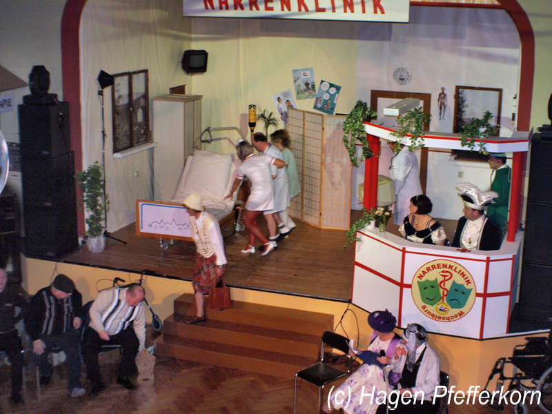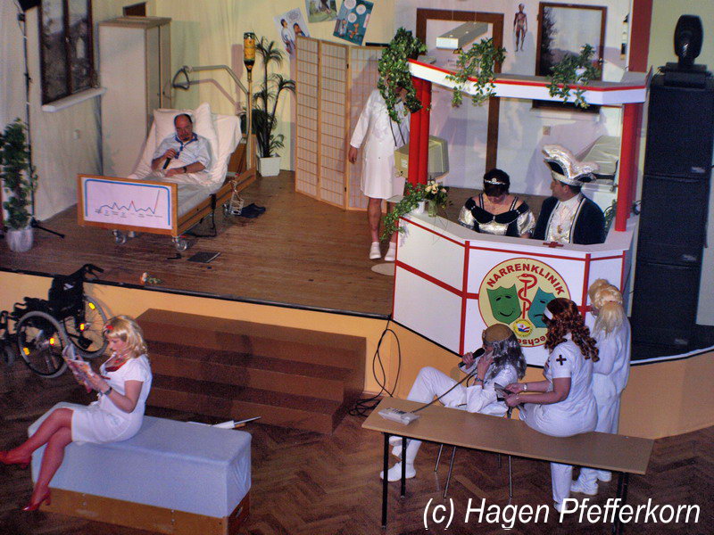 Plötzlich erklang ein Martinshorn und ein Unfallpatient (Udo Modes) wurde in die Narrenklinik eingeliefert. Begleitet von Schwester Conny (Conny Hentschel) und Schwester Mandy (Mandy Schlimper) wurde er zur Aufnahme gebracht und notversorgt.