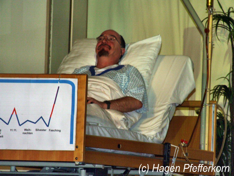 Patient Udo zappt inzwischen zu einem anderen Arztbeitrag: Es geht um einen Massen-Skiunfall in der Region der Narrenklinik. Diese Unfallopfer (Prinzengarde des WCV) kommen auch sogleich in der Klinik an und werden mit einer Wunderpille behandelt. Diese führt in Sekunden zu einer Wunderheilung, was die Unfallopfer dazu bringt, ihre Krücken, Bandagen etc. von sich zu schmeißen und einen wunderschönen Tanz aufzuführen.