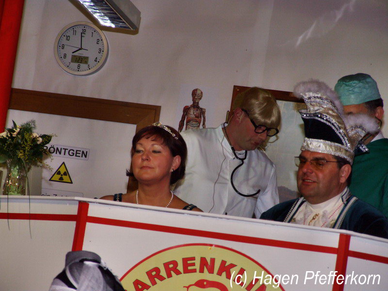 Die Behandlung des Patienten Udo gestaltete sich schwieriger als gedacht. Man konnte einfach nicht herausfinden, was ihm fehlt: war es Schweinegrippe, Rinderwahn oder Hundefieber??? Zur Sicherheit gab man ihm erst einmal ein antiviruelles Mittel. Patient Udo war natürlich neugierig und wollte wissen, was das Mittel bei ihm so bewirkt. Dies wurde ihm in Form einer Darbietung der Kindergarde mit ihrem Virentanz gezeigt. Dabei versuchte ein Virus (Pascal Schulz) sich gegen die Antivieren (Mädchen der Nachwuchsprinzengarde) durchzusetzen. Nach anfänglichen Erfolgen musste er sich aber am Ende doch geschlagen geben. Wahrscheinlich war er ebenso gefährlich wie die angedrohte Schweinegrippe des Jahres 2009.