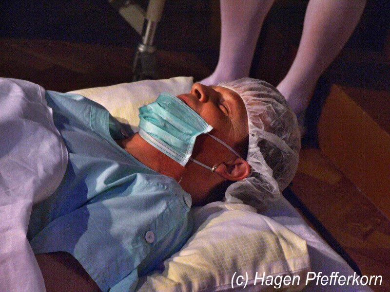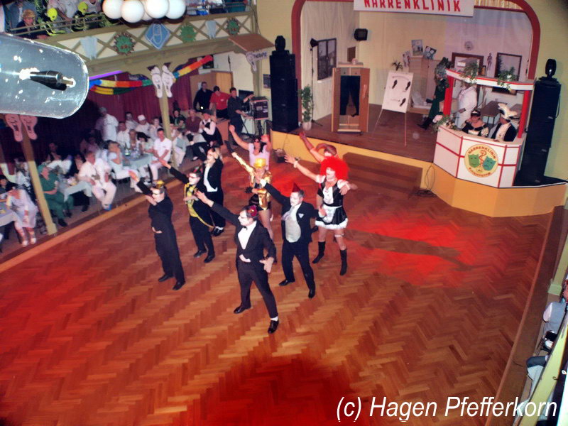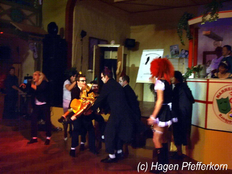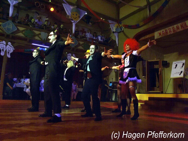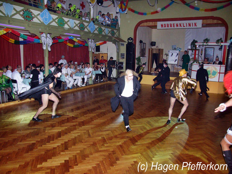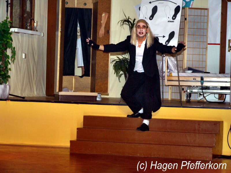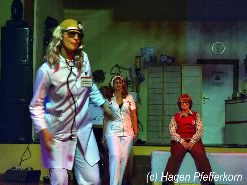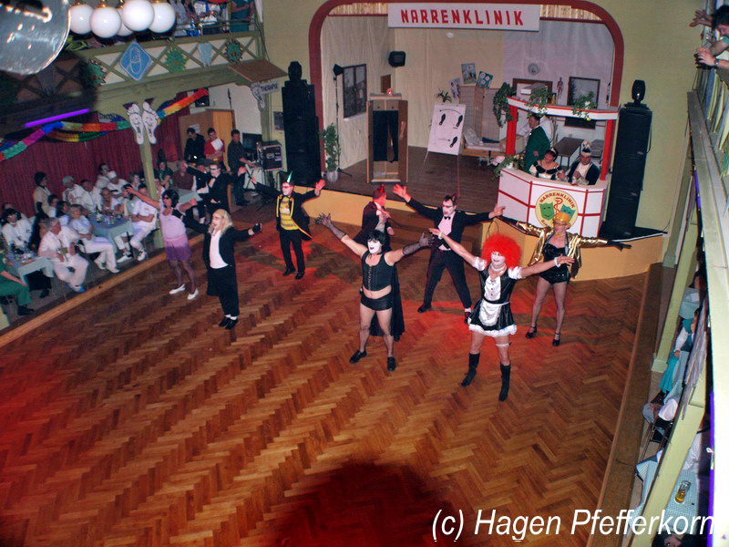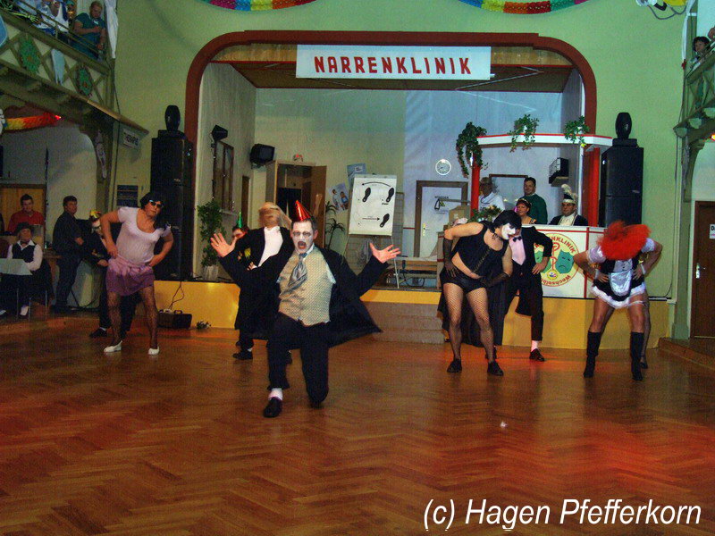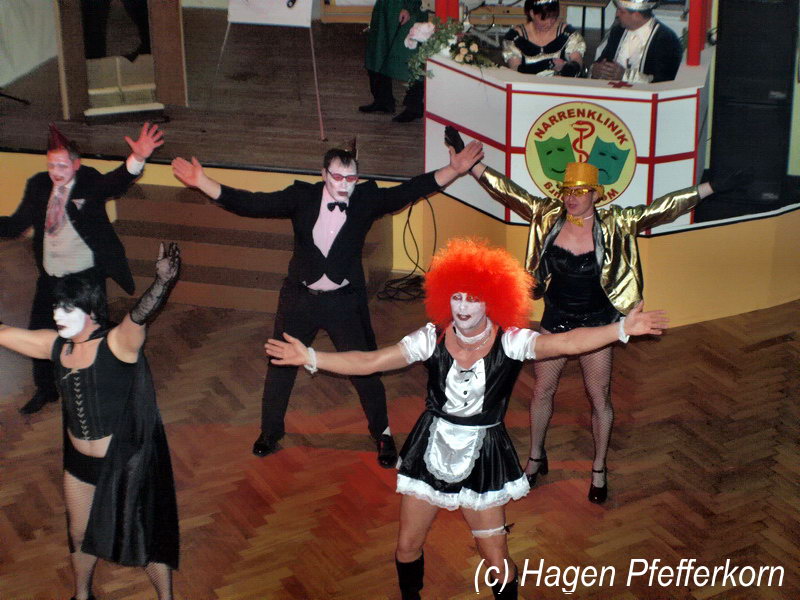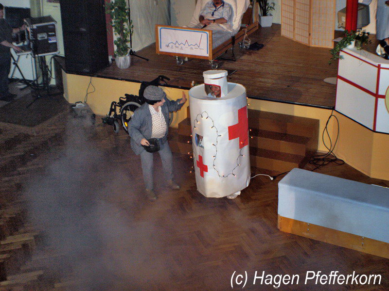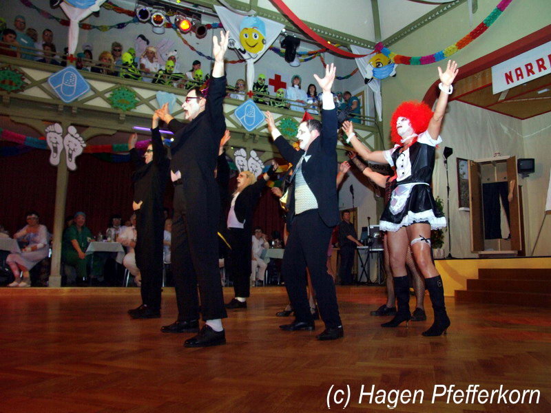 Inzwischen war auch endlich der OP-Termin mit den Unfallopfern aus dem Sägewerk für Oberschwester Elfriede zu Ende. Jetzt hatte das Krankenhaus endlich wieder reichlich Ersatzteile für weitere Operationen. Als sie diese Ersatzteile (amputierte Gliedmaßen) gerade in den Keller ins Ersatzteillager bringen wollte, musste sie feststellen, dass dieser Keller mittlerweile von Zombies bevölkert wurde. Der erste Zombie kam ihr auch gleich aus dem Ersatzteilschrank entgegen gesprungen und führte dann mit seinen Kumpanen (dargestellt vom Männerballett) eine „Rocky Horror Picture Show auf. Da es sich hiermit um den letzten Programmteil handelte, konnte den stürmischen Rufen nach einer Zugabe nun endlich nach gekommen werden. Das Publikum dankte es mit viel Beifall.
