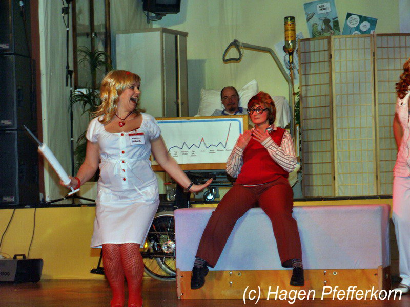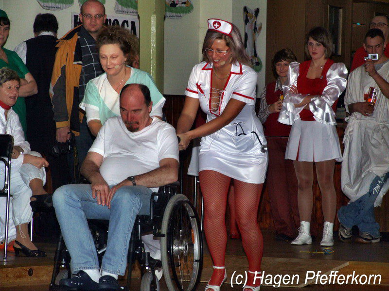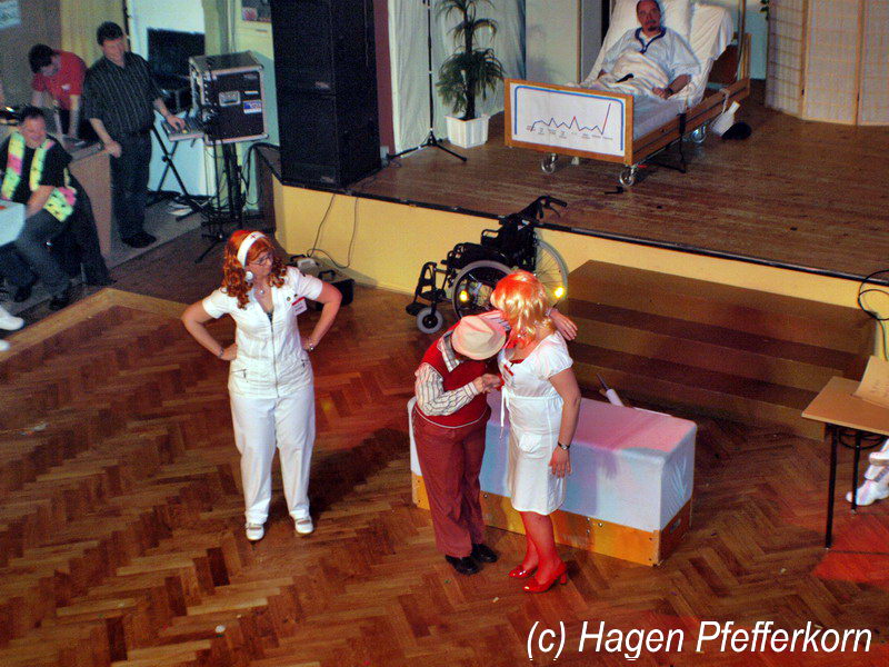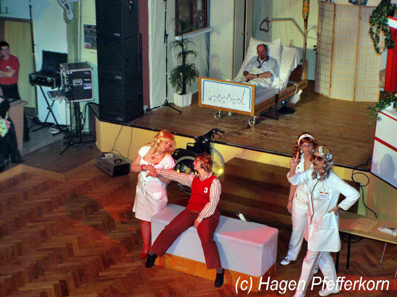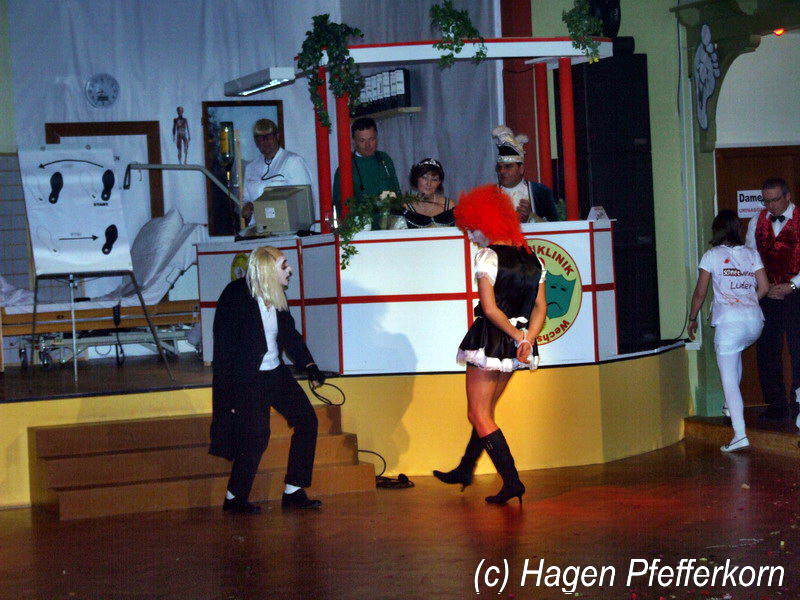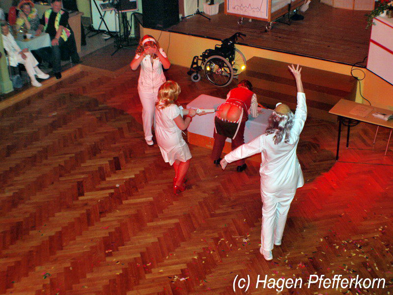 Im zweiten Teil der 2. Faschingsveranstaltung zeigte sich wieder einmal, dass wir mit unserem Programm so richtig den Nerv unseres Publikums getroffen haben müssen. Sonst hätte es nicht so viele Zugeben-Rufe gegeben. Am lautesten waren diese beim Auftritt der Waschweiber mit der "Kleinen Praxis Dr. Schluck".  Doch, um den Programmablauf des "Theaderstückes" nicht zu stören, gab es erst für den letzten Programmteil, dem Männerballett mit ihrer "Rocky Horror Picture Show" dann eine Zugabe für das Publikum.