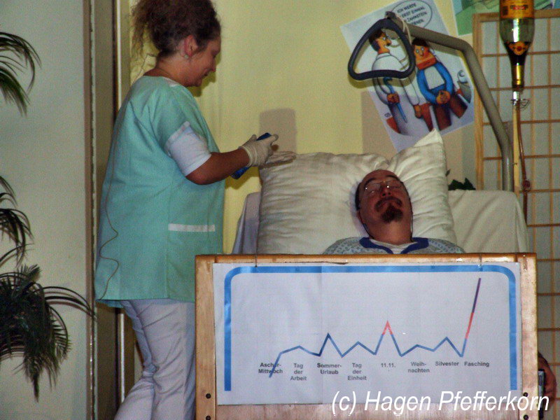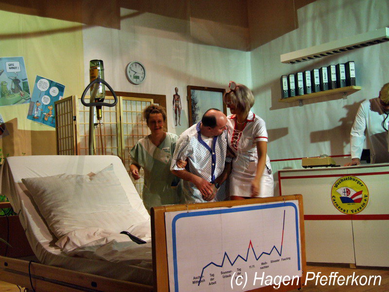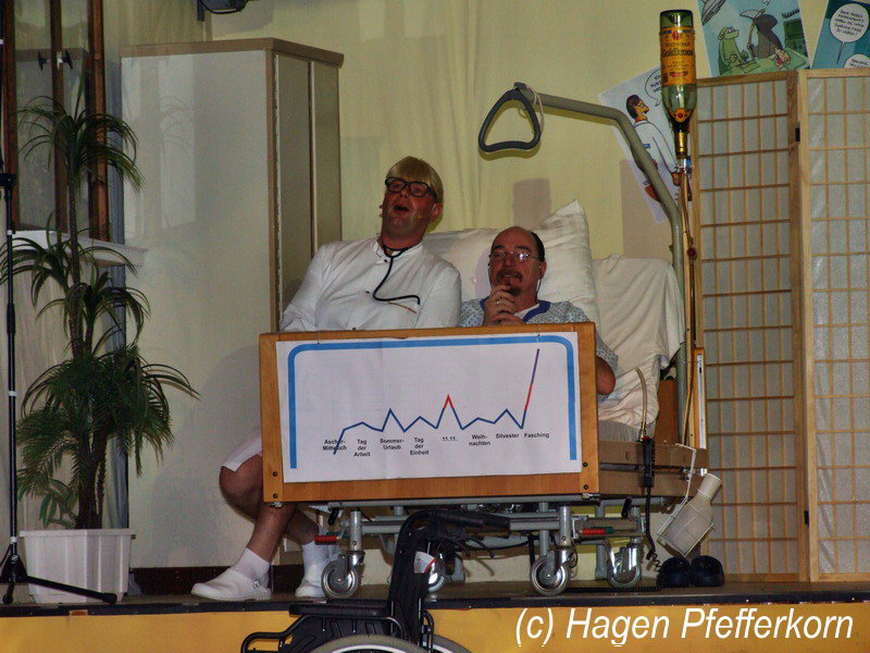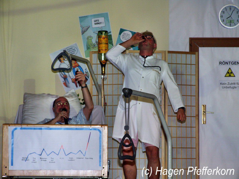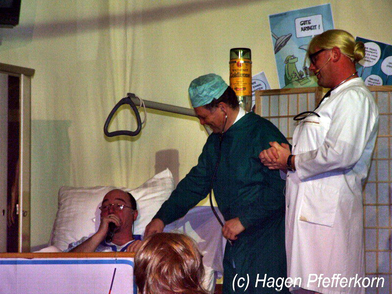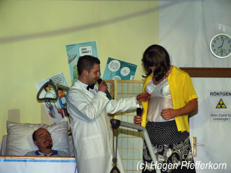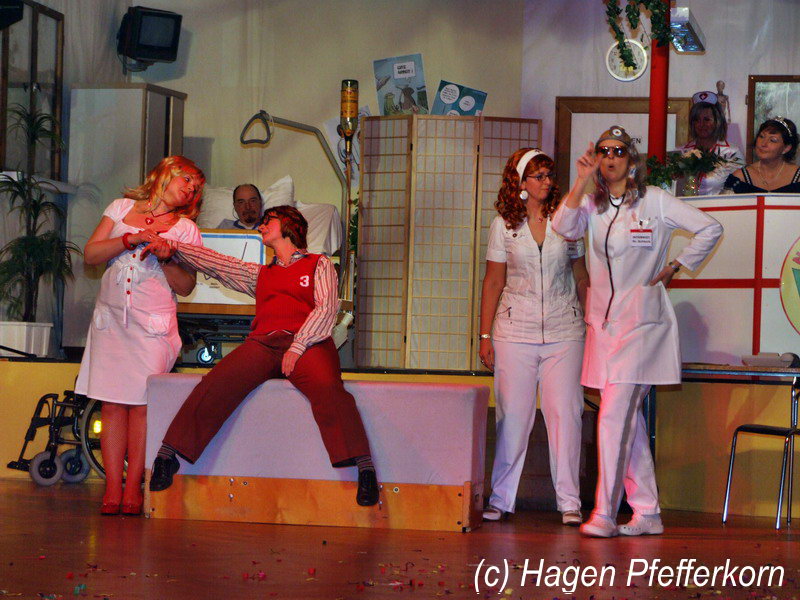 Im zweiten Teil der 2. Faschingsveranstaltung zeigte sich wieder einmal, dass wir mit unserem Programm so richtig den Nerv unseres Publikums getroffen haben müssen. Sonst hätte es nicht so viele Zugeben-Rufe gegeben. Am lautesten waren diese beim Auftritt der Waschweiber mit der "Kleinen Praxis Dr. Schluck".  Doch, um den Programmablauf des "Theaderstückes" nicht zu stören, gab es erst für den letzten Programmteil, dem Männerballett mit ihrer "Rocky Horror Picture Show" dann eine Zugabe für das Publikum.