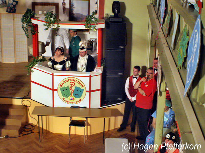 Desonders werähnt wurde zu dieser Faschingsveranstaltung auch die Leistung der Gruppe Bühne um die beiden "Macher", David Meliczek und Sibyll Listner. Ohne deren tun würde viel vom Niveau der Faschingsveranstaltungen des WCV verloren gehen. Und jeder, der sich schon einmal mit so etwas befasst hat wird wissen, dass das nicht in ein, zwei Stunden zu erledigen ist.  Von denen, die dabei regelmäßig dabei sind, können es manche arbeitsmäßig einrichten, andere nehmen extra Urlaub dafür, um den Bühnenbau jeweils Anfang Januar bewerkstelligen zu können.