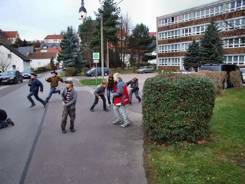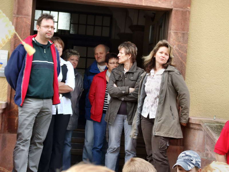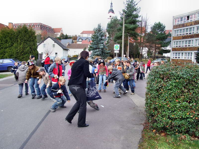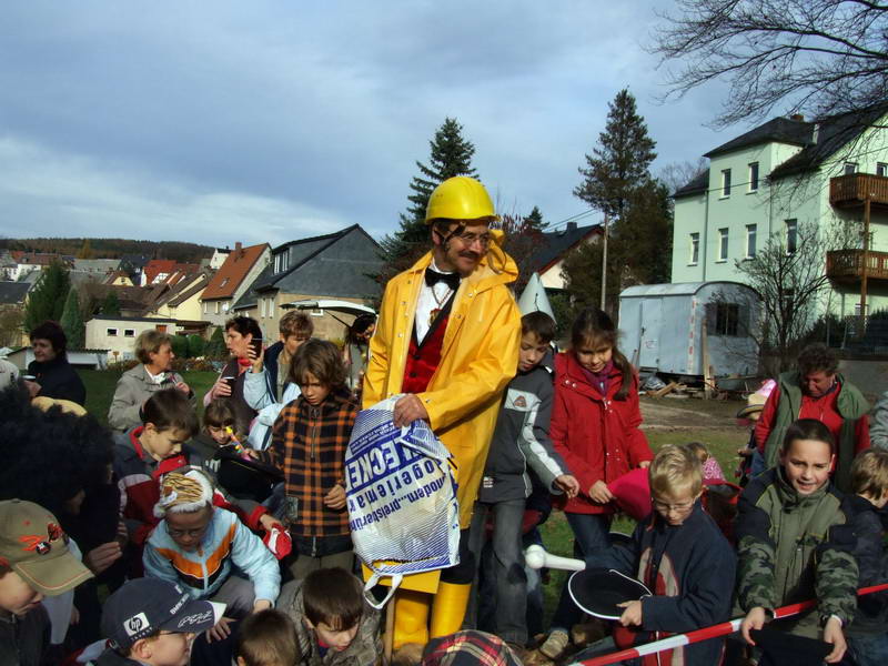 Neben zahlreichen Wechselburgern warteten am Rathaus auch die Kinder unserer AWO-Kindertagesstätte "Burattino". Gerne nahmen sie den Regen aus Süßigkeiten entgegen.