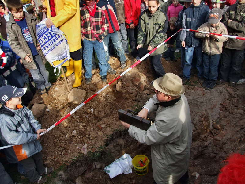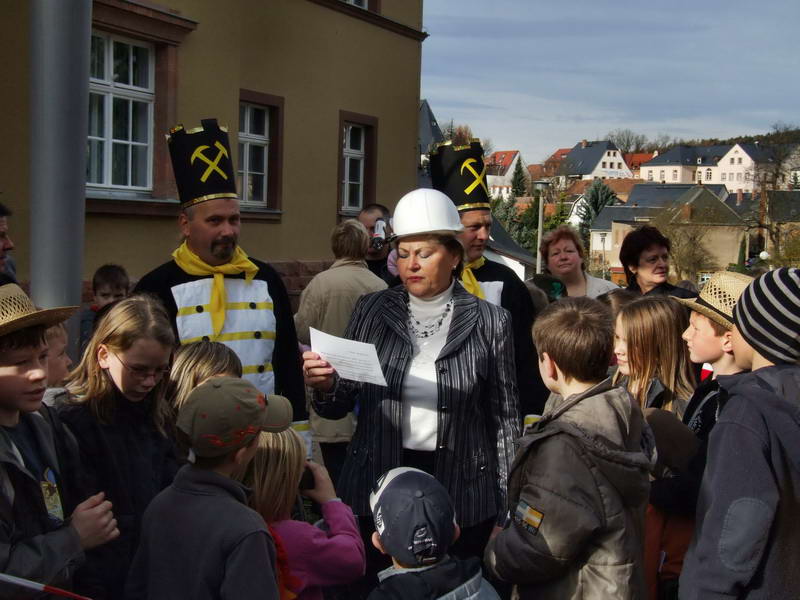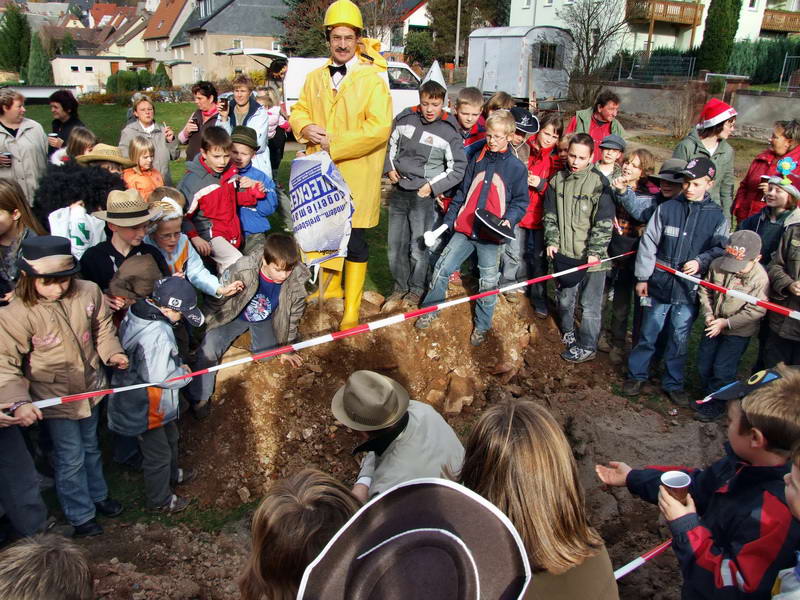 Diese Kommission aus drei Bergleuten (Stefan Theuer, Torsten Knorr und Sven Benndorf) unter der Leitung des "Ober-Bergbau-Amts-Rates" Andreas Mäcki Vollstädt wurde unterstützt von einem Arschelogen (Rainer Thiele), der auch prompt in einer Baugrube eisgekühlte Knochen (die müssen aus der Eiszeit sein) und einen Schatz (eine extra vergrabene Kiste mit Schokoladen-Talern) fand. Da er mit den Gepflogenheiten der Wechselburger Kämmerei nicht vertraut war, hat er diesen gefundenen Schatz natürlich gleich unter die anwesenden Kinder verteilt. Auf Anfrage, wie er dazu käme, sagte er "was weg ist ist weg!"