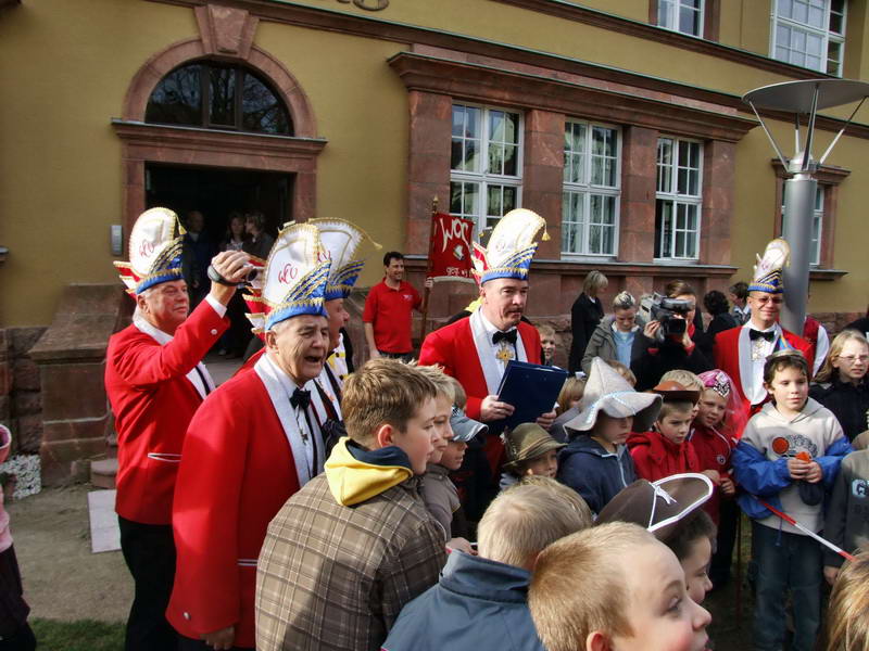 Pünktlich um 11 Uhr 11 trafen die Närrinnen und Narren des WCV vor dem Wechselburger Rathaus ein, um dort die Schlüsselübergabe für die Zeit der fünften - der närrischen - Jahreszeit von der Bürgermeisterin, Frau Naumann, zu fordern. In diesem Jahr wurden sie von zahlreichen Schülerinnen und Schülern der Wechselburger Grundschule begleitet. Diese hatten freundlicherweise die Erlaubnis erhalten, sich diesem närrischen Treiben anzuschließen.