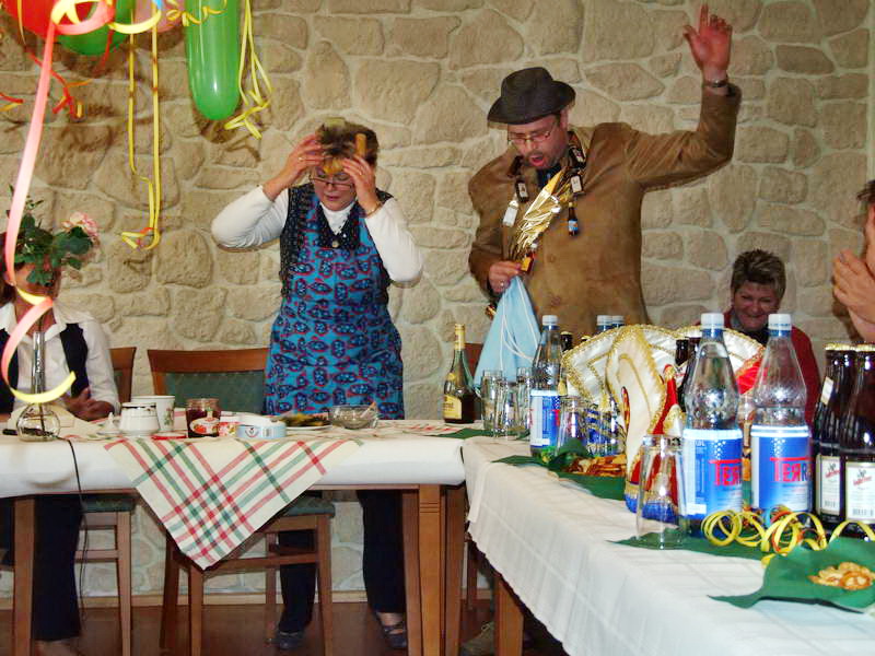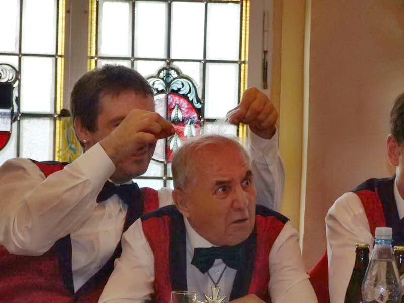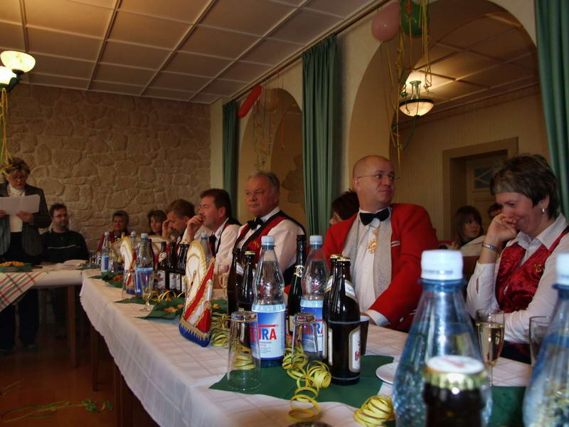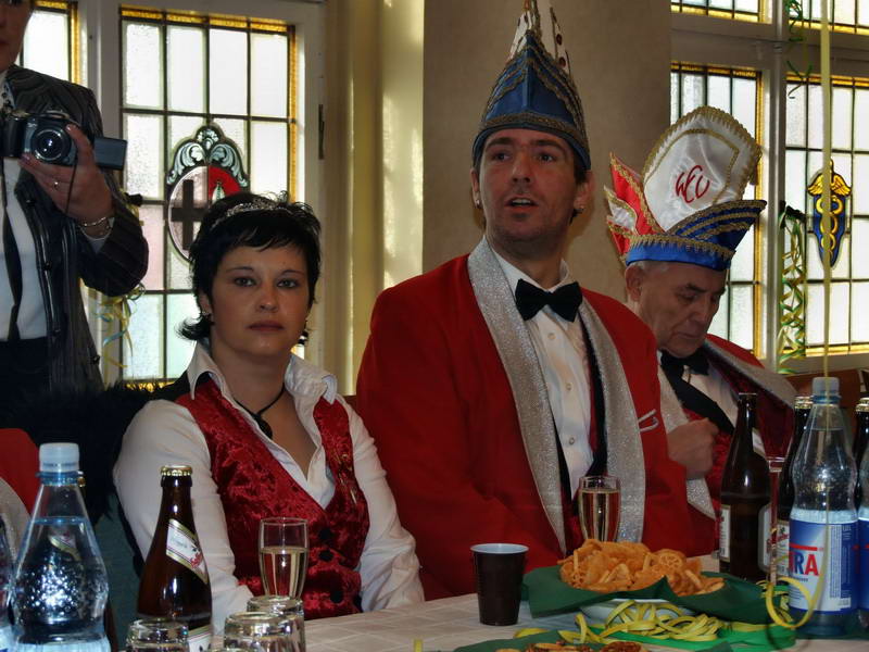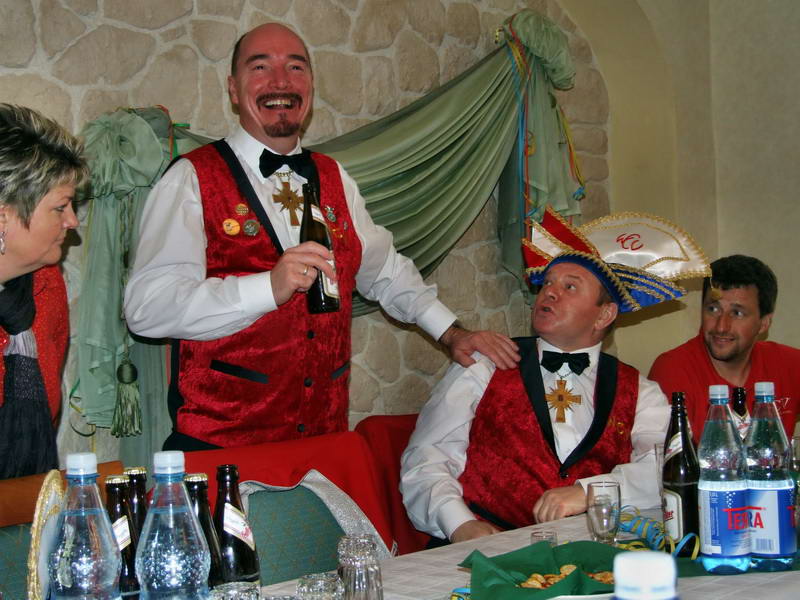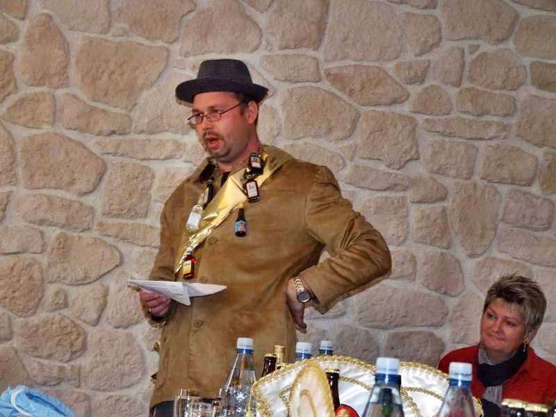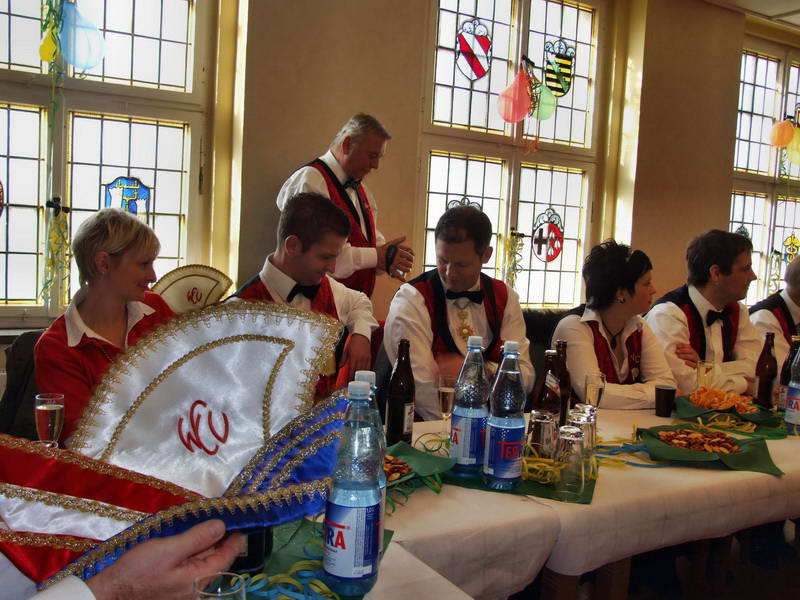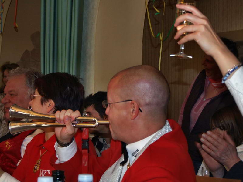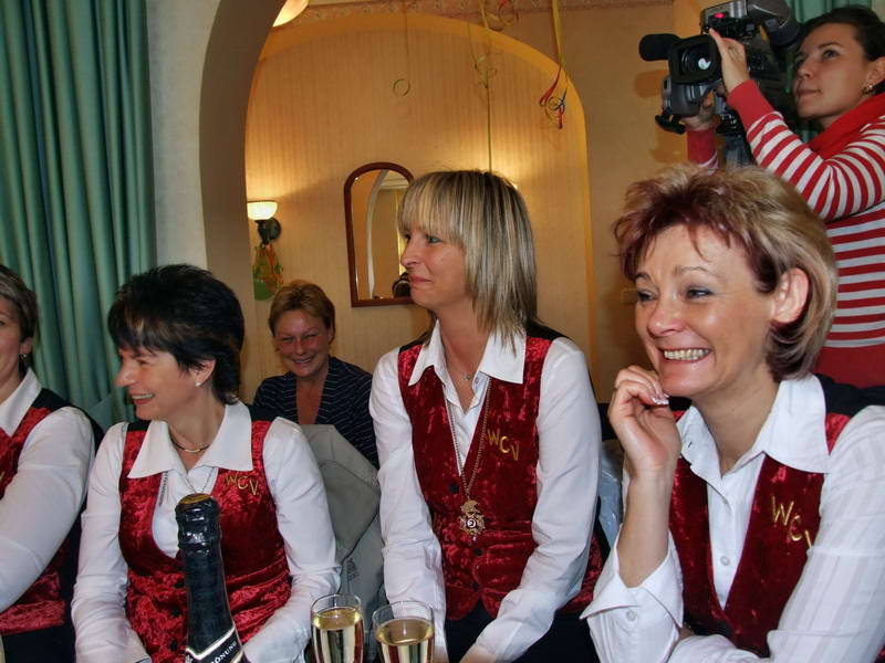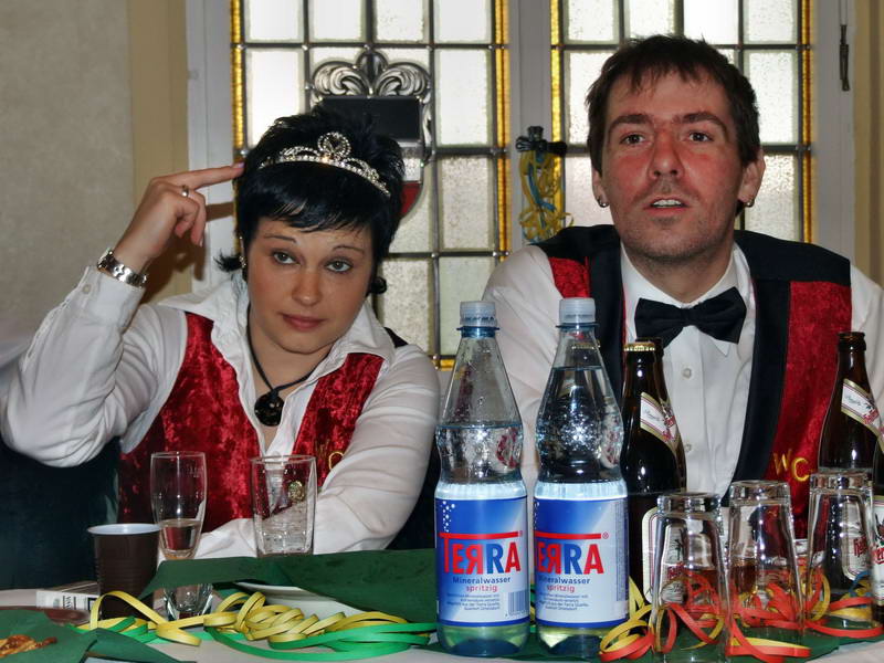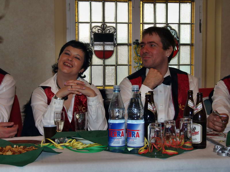 Ein besonderer Leckerbissen war dann die Darstellung aus dem Leben des Ehepaares von Erna (Renate Naumann) und Karl-Anton-Fritz (Michael Kellmann - er wurde im Verlauf der Darbietung mit unterschiedlichen Namen bezeichnet). Das Besondere daran war eigentlich die Feststellung, dass aus einem vor wenigen Jahren noch dem Fasching feindlich gegenüberstehenden Herrn Kellmann der Künstler Michael K. geworden ist, den man sich gut im WCV als Darsteller vorstellen kann. Geprobt dafür hatte er ja schon: Denn in seiner Darbietung hat er sich schon bis zum WCV-Präsidenten hoch "gedient".