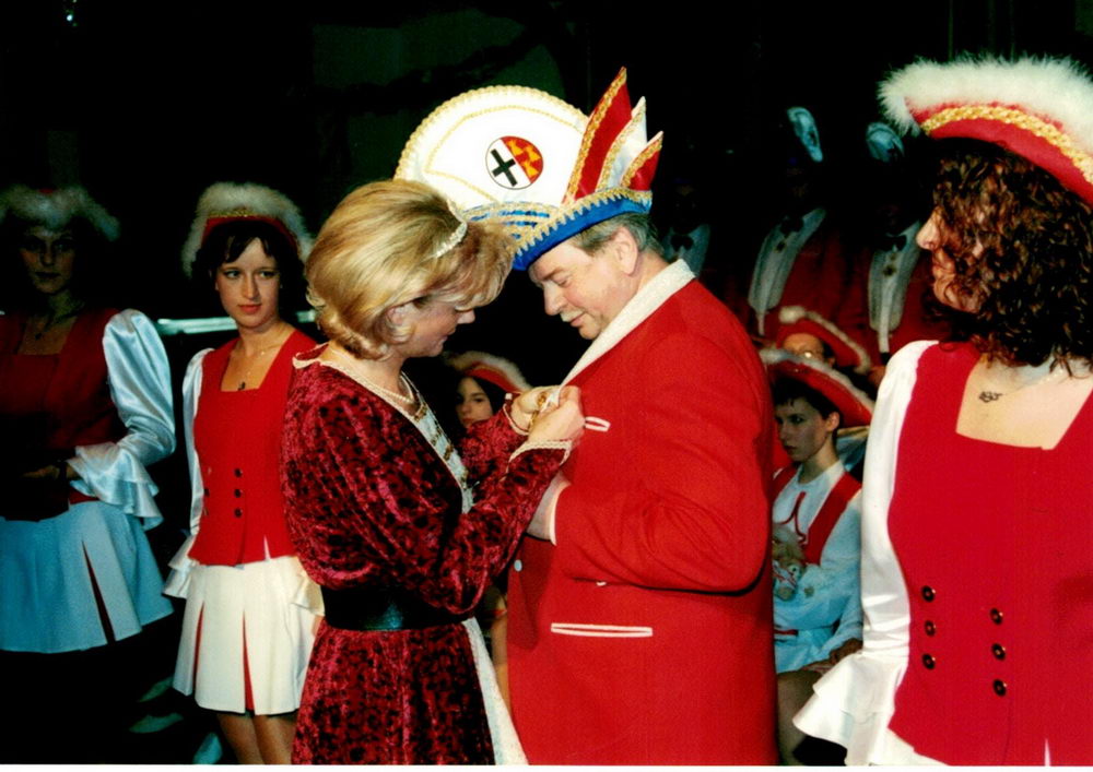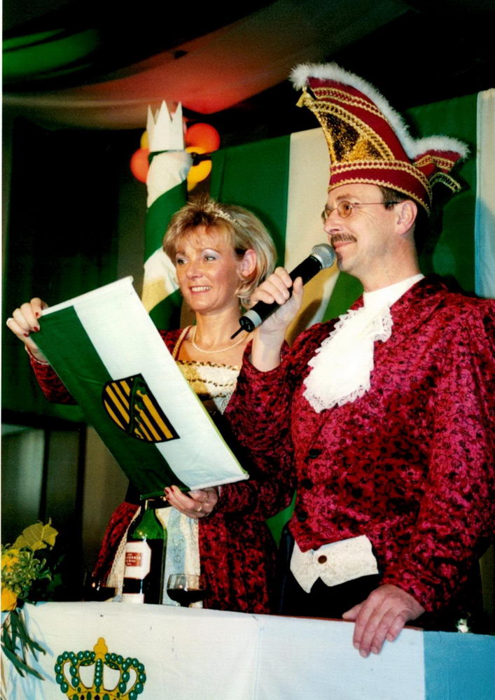 Nachwuchsprinzengarde, die in dieser Zusammensetzung ihren letzten Auftritt hatte, da bis auf ganz wenige Ausnahmen alle Mitglieder in der nächsten Saison in die Prinzengarde aufrücken sollen. Der Zeremonienmeister Reinhard Geißler zelebrierte nach diesem Gardetanz die schon fast zur Tradition gehörende Biermesse, um dann an Prinz Andreas d. I. Mäcki von Göritzhain zum Verlesen der Gesetze des Abends zu übergeben.