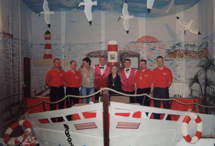 Ein besonderes Merkmal der 32. Faschingssaison war die Gestaltung der Bühne und des Saales. In einigen hundert Arbeitsstunden wurde eigens für die Faschingsveranstaltungen ein Schiff auf und an die Bühne gebaut. Passend dazu wurde auch das Bühnenbild und der gesamte Saal ausgestaltet.