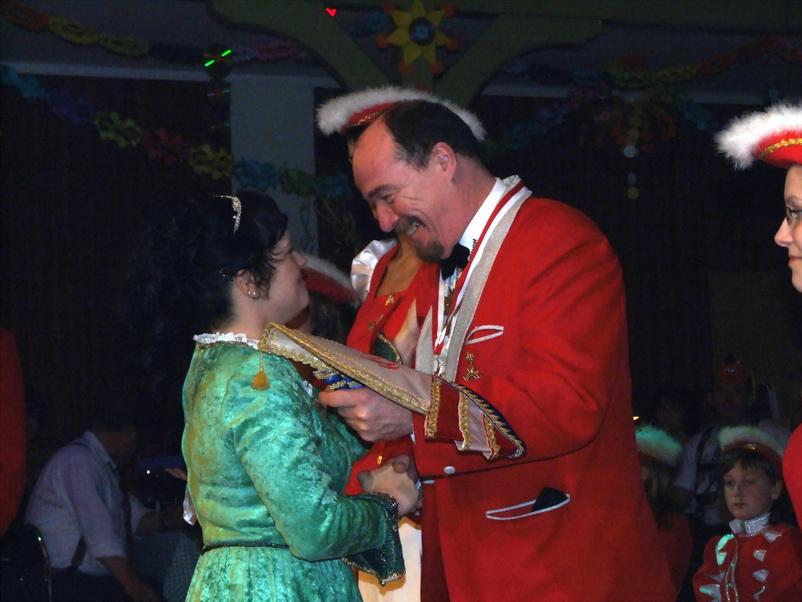 Ein ehemaliges Prinzenpaar beobachtet das Treiben des aktuellen Paares.