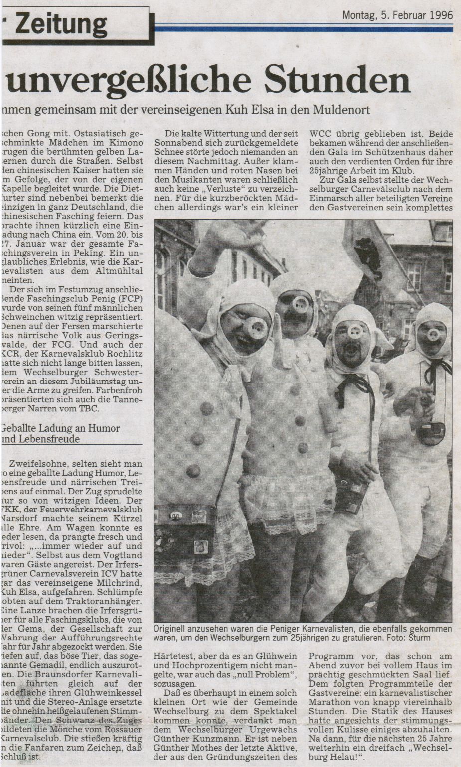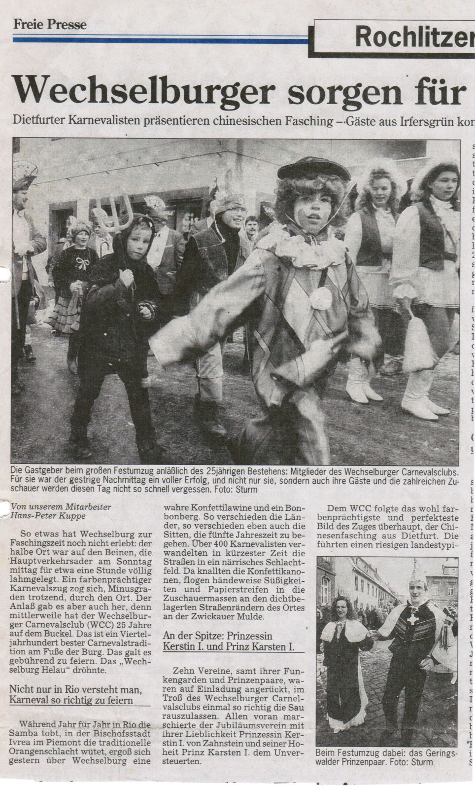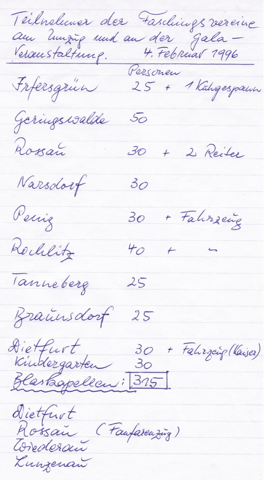 Ungefähr 300-400 Besucher erlebten den bisher einmaligen Festumzug von zehn Faschingsvereinen durch Wechselburg – trotz klirrender Kälte – in einer ausgelassenen Stimmung.