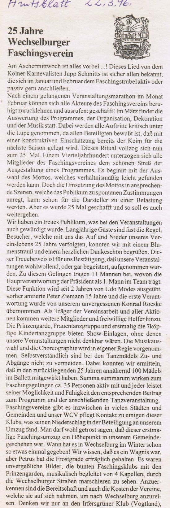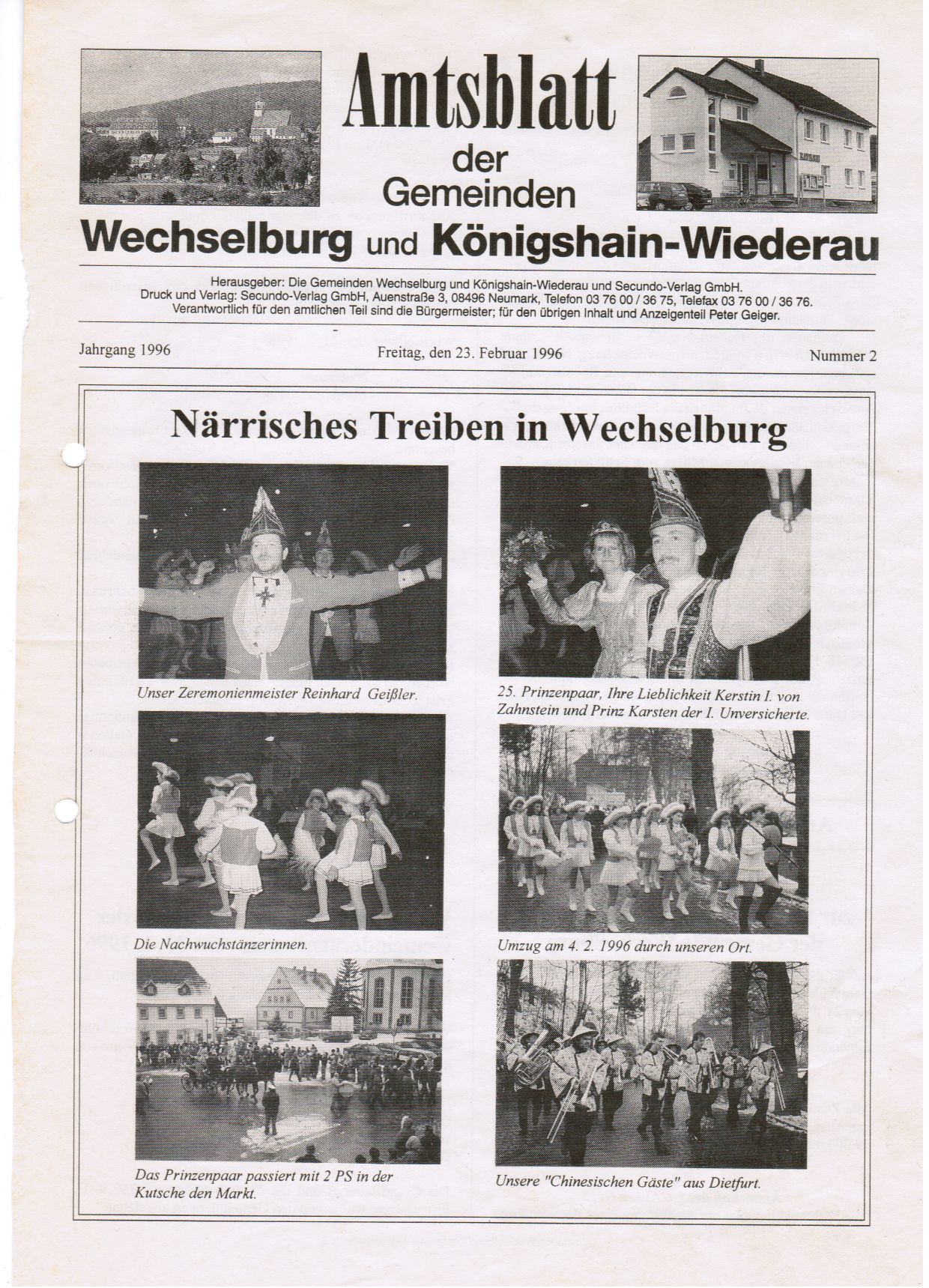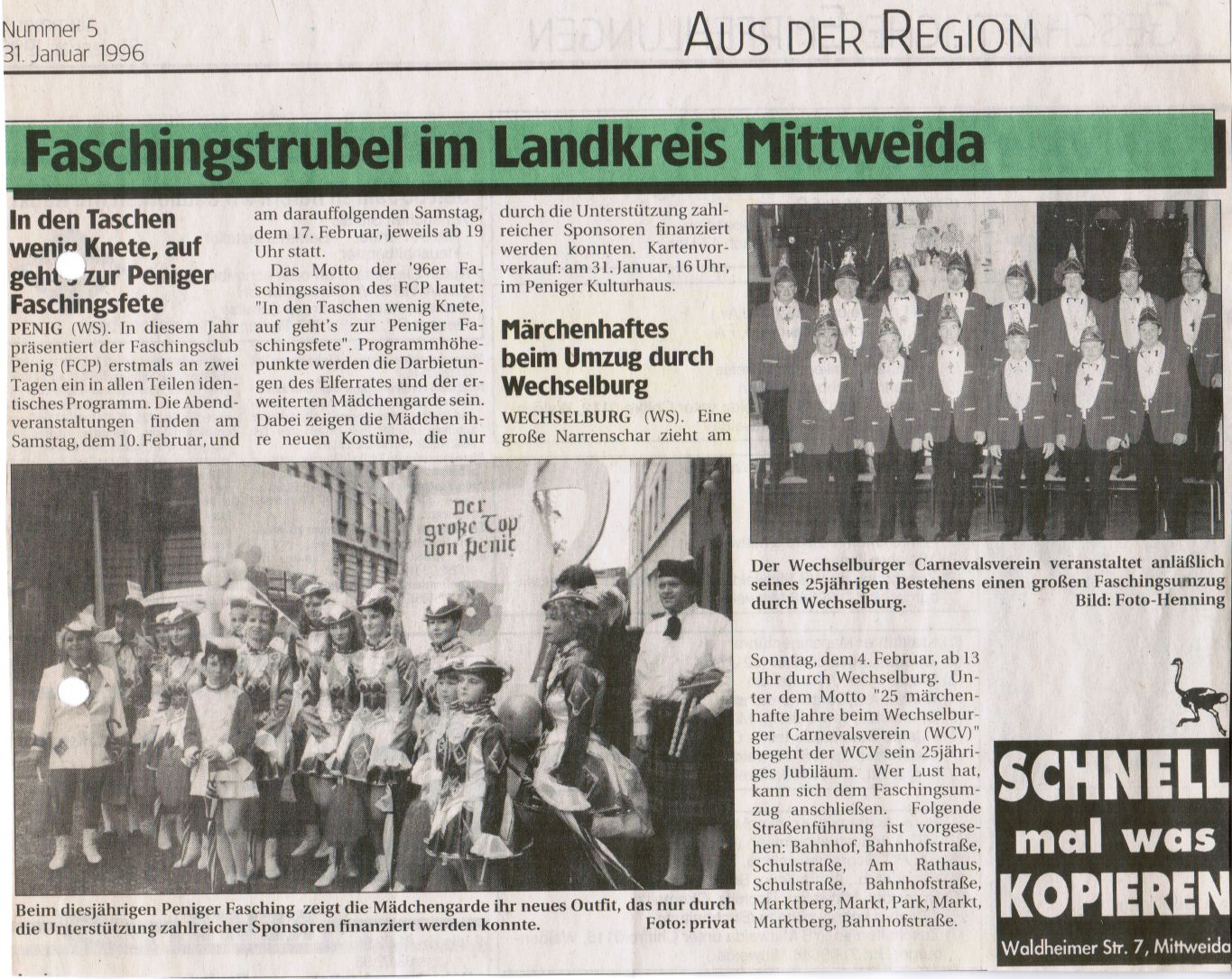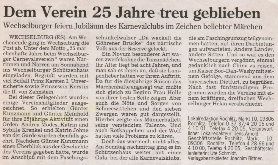 Als Neuheit im Wechselburger Fasching trat in dieser Saison unsere neue Nachwuchsprinzengarde auf. Diese wurden durch Andrea Modes, Silke Naumann und Kathrin Johne hervorragend angeleitet. Beim Auftritt sah man den Mädchen an, daß sie großes Lampenfieber hatten. Doch sie machten ihre Sache super. Bereits im Jahre 1979 gab es in unserem Fasching einmal eine solche Nachwuchs-Tanzgruppe.