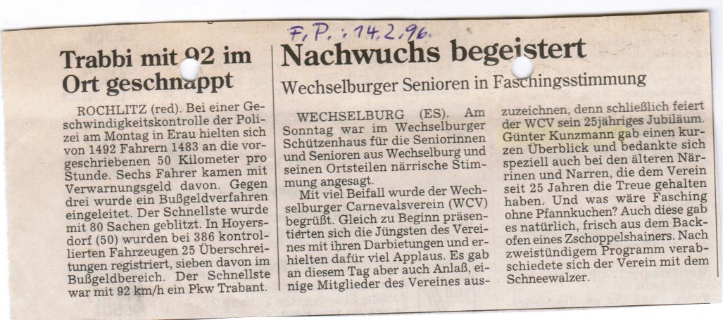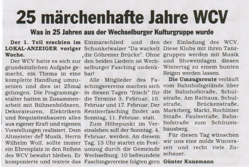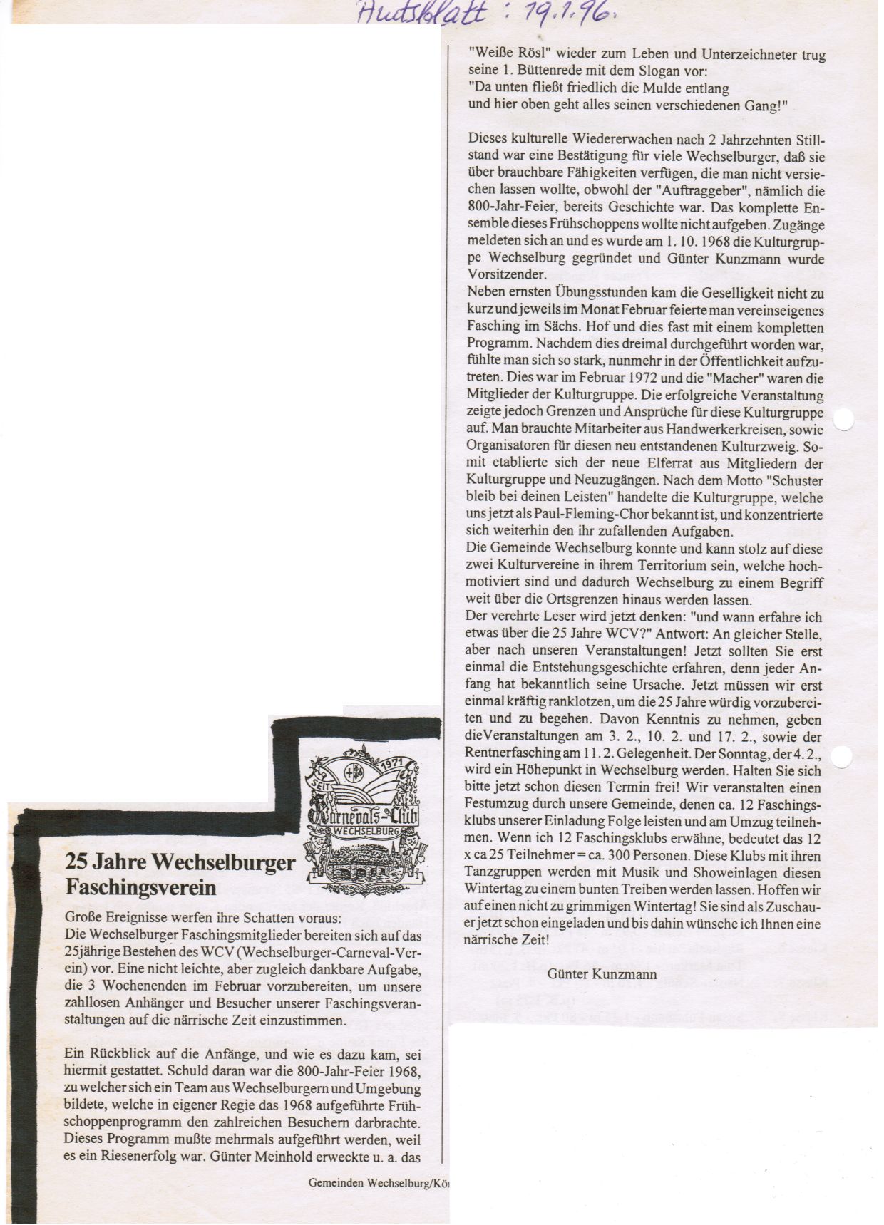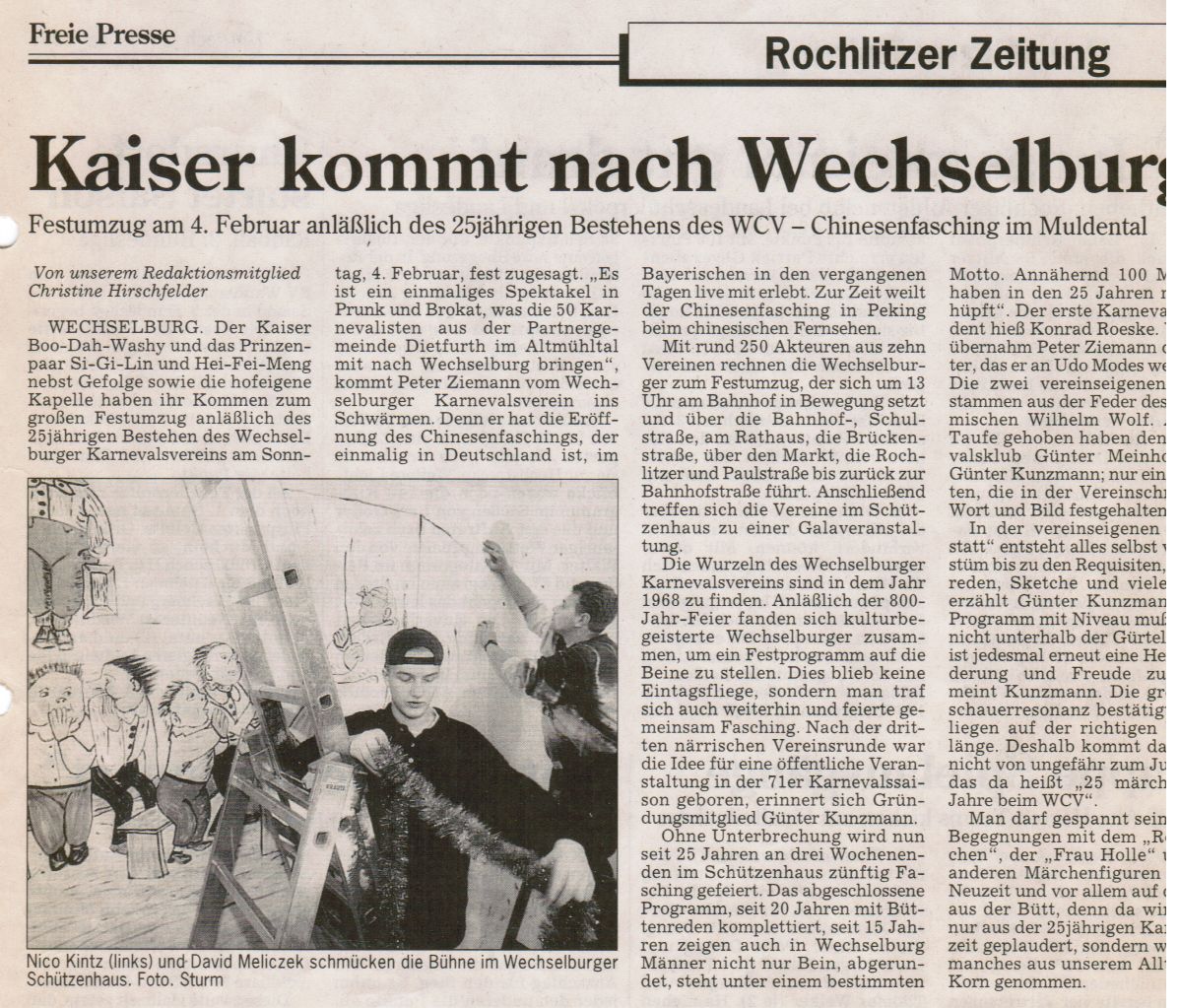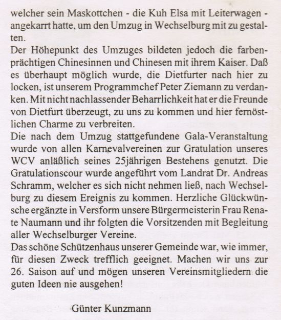 Als Neuheit im Wechselburger Fasching trat in dieser Saison unsere neue Nachwuchsprinzengarde auf. Diese wurden durch Andrea Modes, Silke Naumann und Kathrin Johne hervorragend angeleitet. Beim Auftritt sah man den Mädchen an, daß sie großes Lampenfieber hatten. Doch sie machten ihre Sache super. Bereits im Jahre 1979 gab es in unserem Fasching einmal eine solche Nachwuchs-Tanzgruppe.