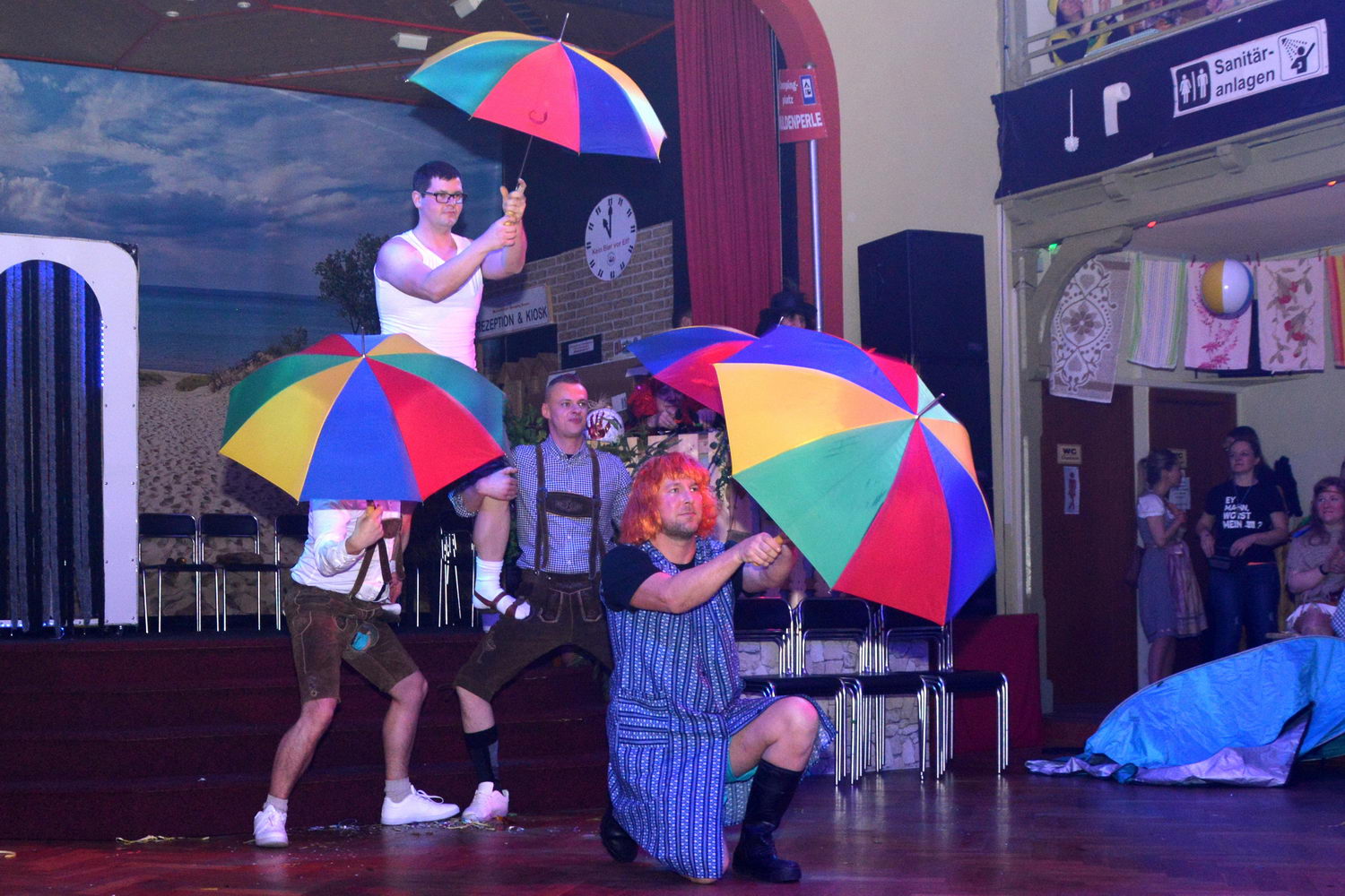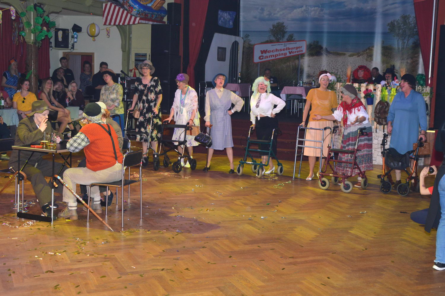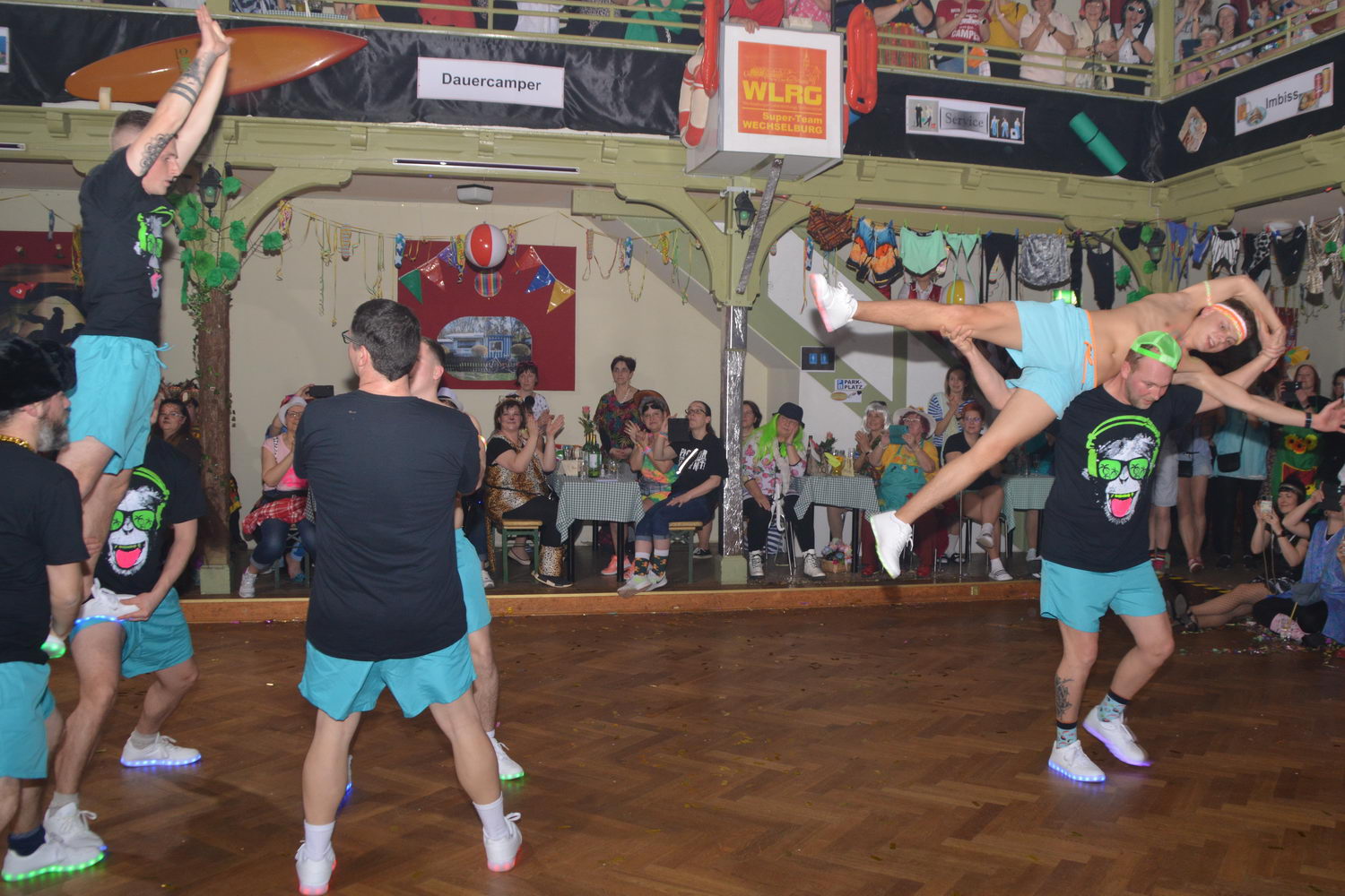 Der Höhepunkt war dann der Auftritt der „Jungen Wilden“. Auch bei diesen forderten die Weiber nach der Zugabe noch eine Zugabe. Und dieses Mal ließen sie sich nicht beruhigen, bis die „Jungen Wilden“ dann noch einmal auftraten. Da konnte man zum Glück darauf vertrauen, dass sich die „Jungen Wilden“ in den vergangenen drei Jahren stark verjüngt haben. Dadurch war dies für die Meisten konditionell kein Problem.