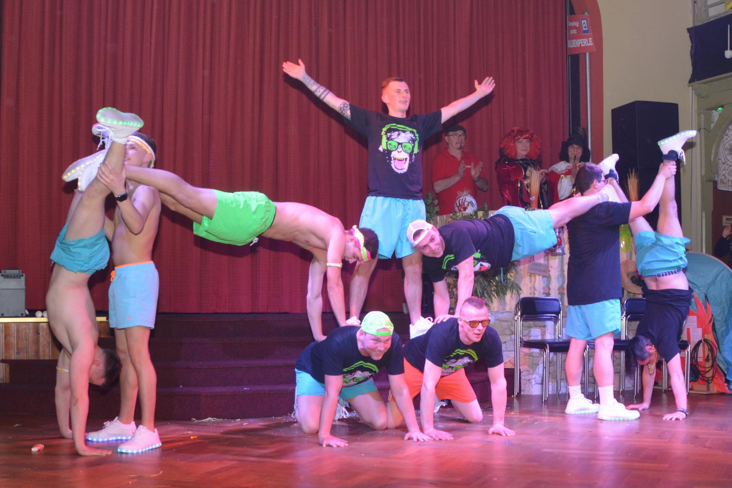 Den Abschluss des ersten Teils an diesem Abend war der Tanz des Männerballetts. Für mich als Mittänzer war es schön, dass es nur eine Zugabe gab. Die Weiber im Saal wollten zwar noch mindestens eine Weitere. Doch Karina Baronius als Zeremonienmeisterin verhinderte dies zum Glück.