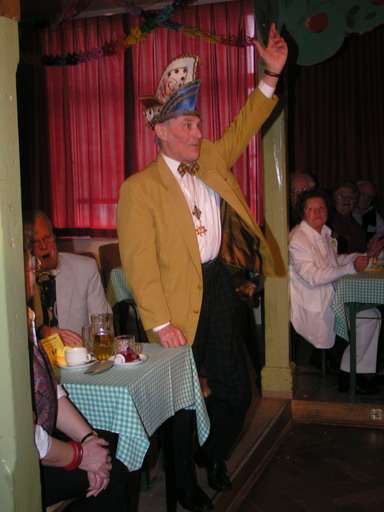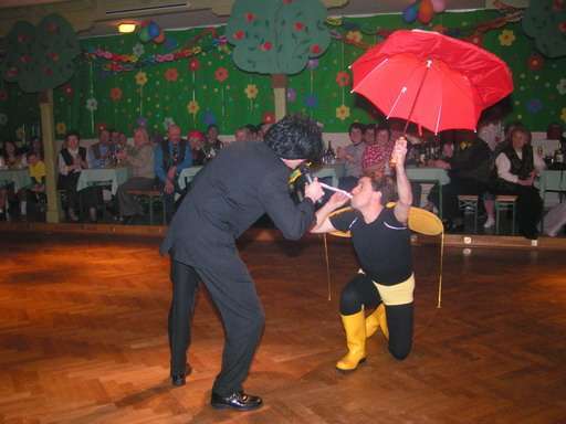 Eine Kette - fast - ohne Ende: Durch den krankheitsbedingten Ausfall von Günter Meinhold und die urlaubsbedingte Abwesenheit von Günter Winkler musste erstmals seit seiner Elferratsmitgliedschaft der Lampenhalter des WCV Hagen Pfefferkorn mit dem Elferrat einmarschieren. Seinen Platz während des ersten Programmteiles wurde von seinem Vorgänger in der "Kanzel", Daniel Braunroth, eingenommen. An diesem Abend war dies aber nicht der einzige vor allem durch Krankheit bedingte Ausfall.