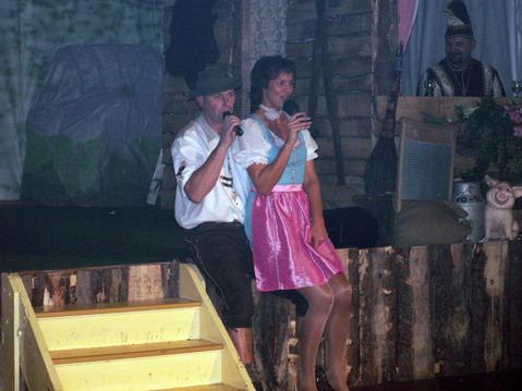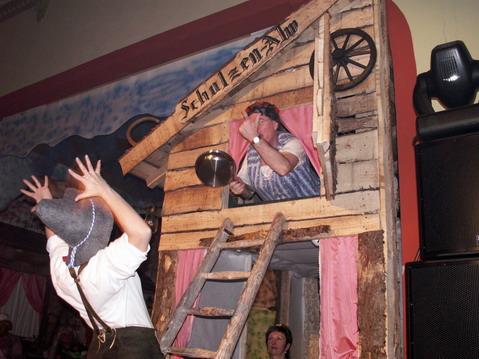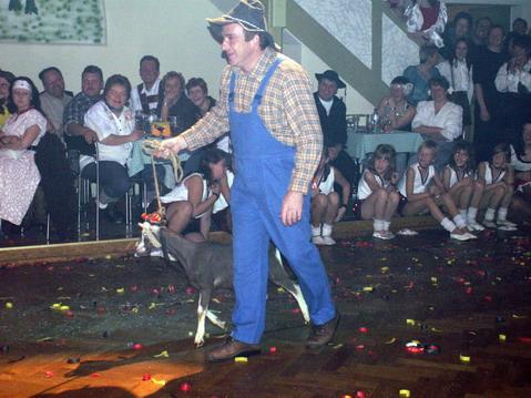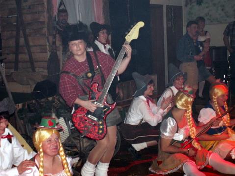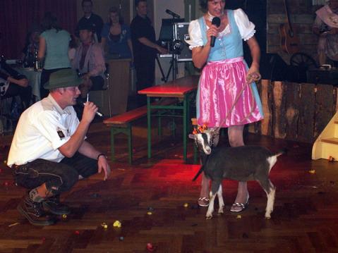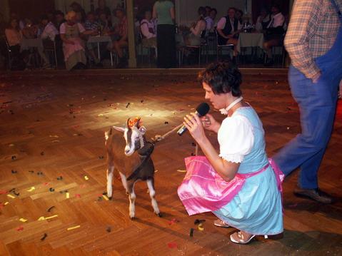 Und jetzt kam sie - die Überraschung des Abends. Zumindest für "Heidi" (Sybill). Ihr Peter (David) hatte in Erfahrung gebracht, dass sie sich schon lange eine Ziege gewünscht hatte. Und er hatte natürlich keine Kosten und Mühen gescheut, und schenkte ihr zur 4. Faschingsveranstaltung in aller Öffentlichkeit eine Ziege, bzw. - um es genauer zu sagen - einen jungen Ziegenbock. Kurz entschlossen nannte sie ihn ihren Bruno.