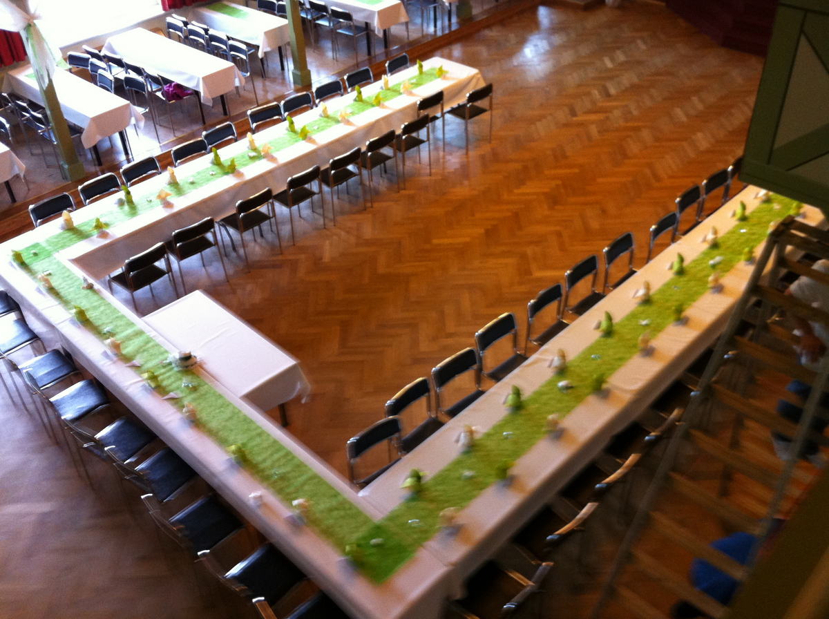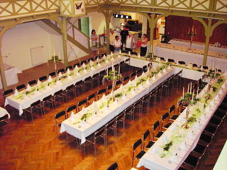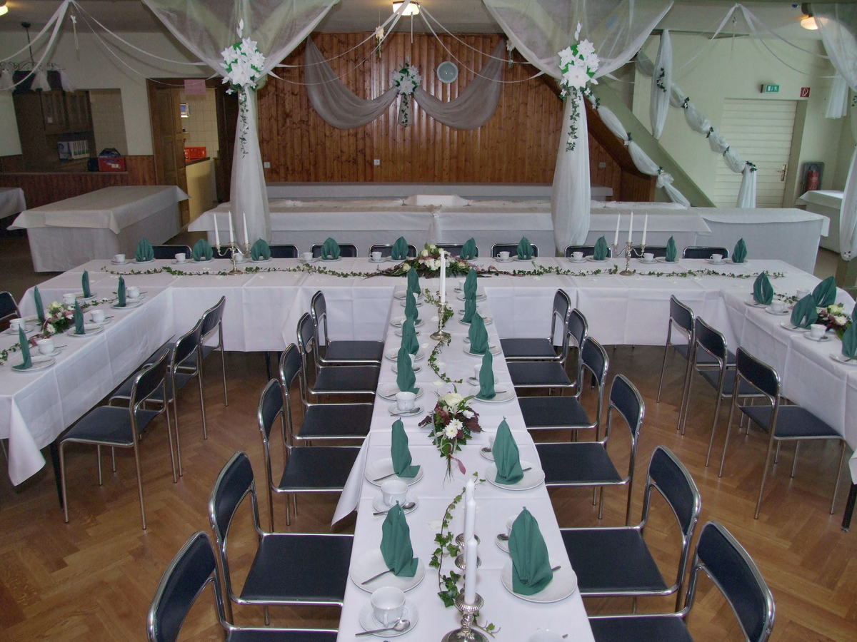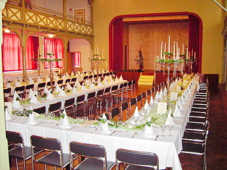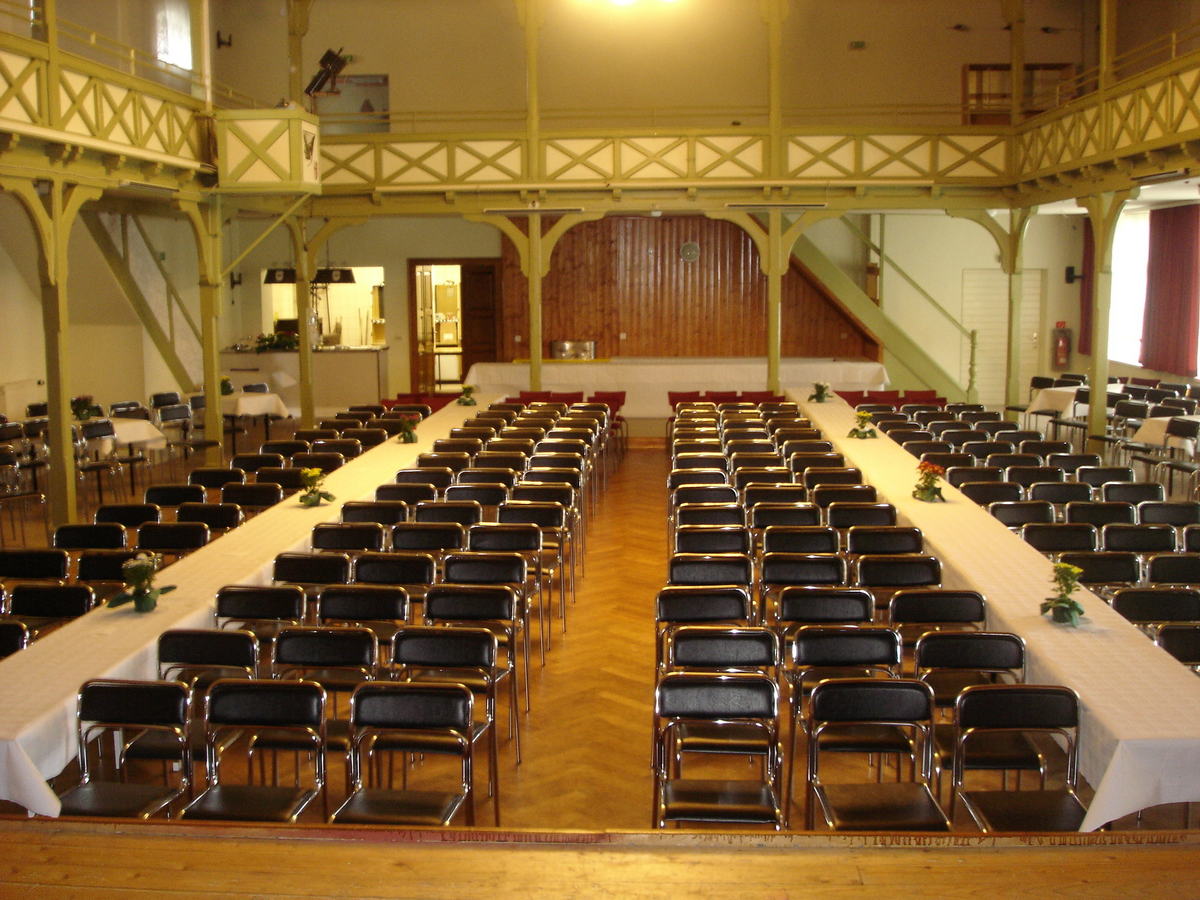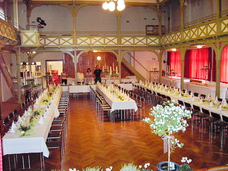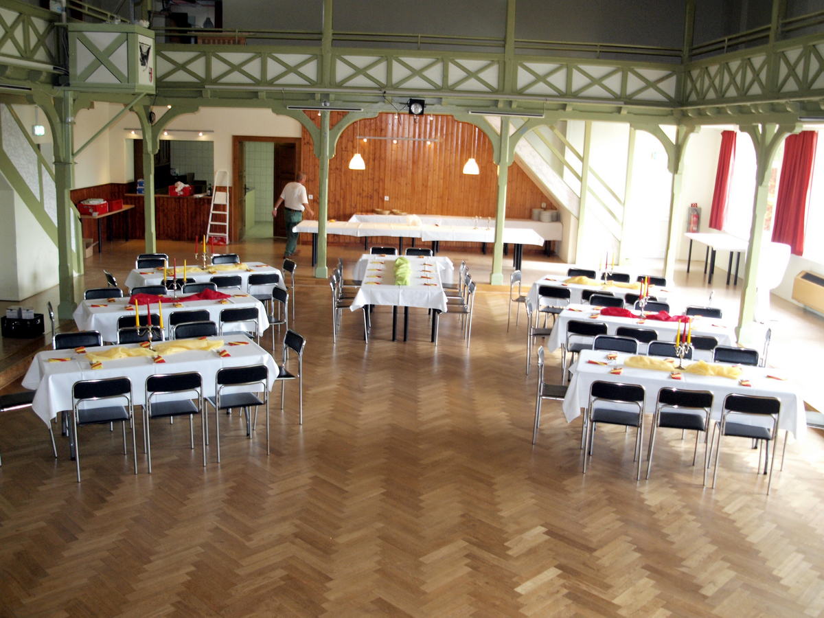 Dafür bietet der Saal eine Platzkapazität von bis zu 250 Personen. Durch unsere erfahrenen Mitarbeiter lässte sich der Saal auch so einräumen, dass Feiern schon ab ca. 50 Personen in ansprechendem Ambiente durchgeführt werden können.