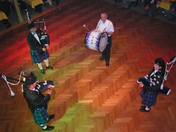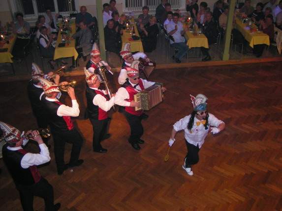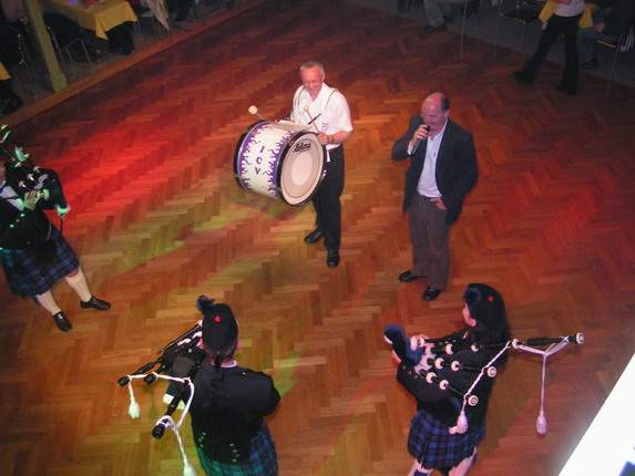 Als Gäste waren zu dieser ersten Veranstaltung unter neuer Federführung Mitglieder des Irfersgrüner Faschings Club angereist. Sie hatten Ihren Spielmannszug mit ihren Dudelsackbläsern mit gebracht. Dies war dann auch die erste Showeinlage des Abends.